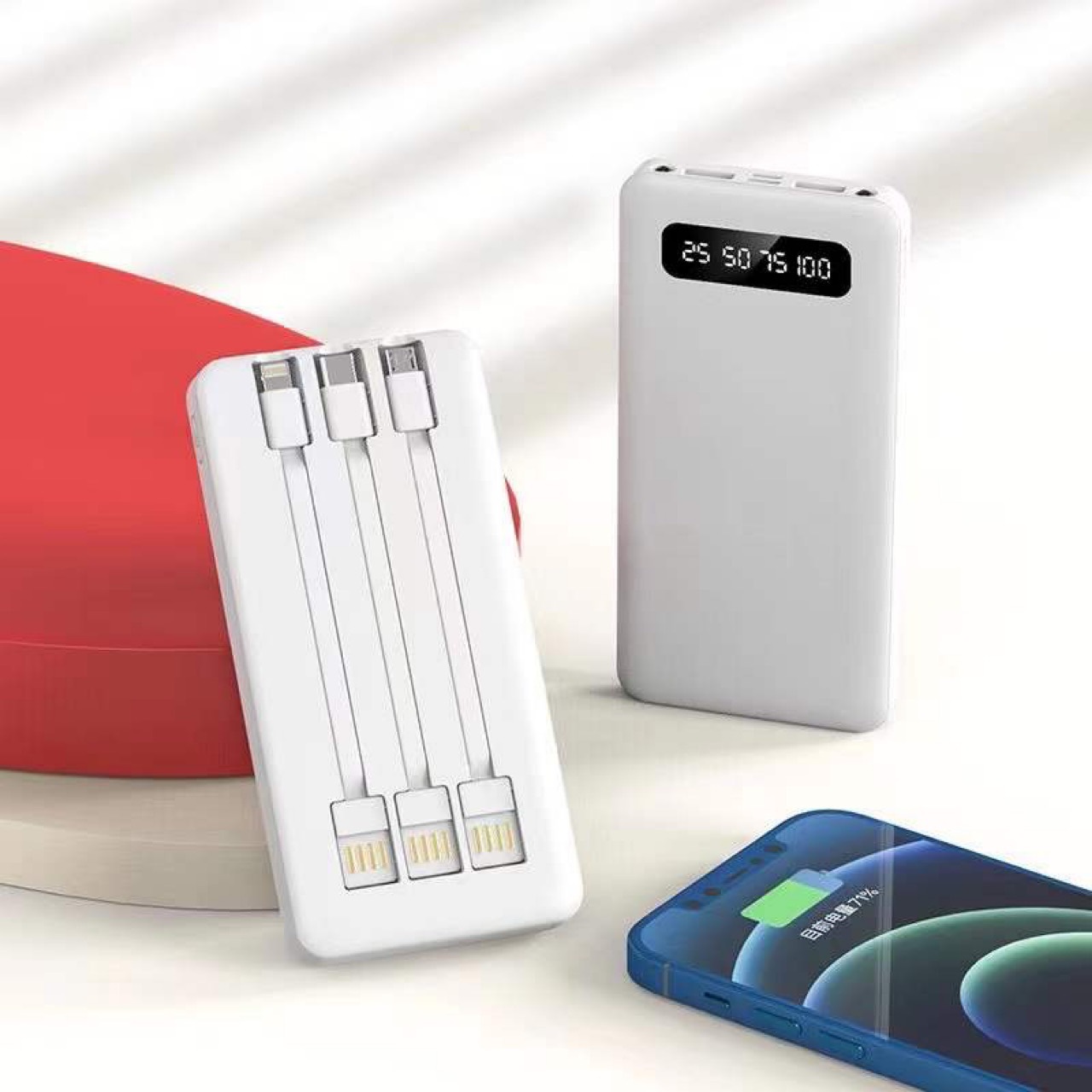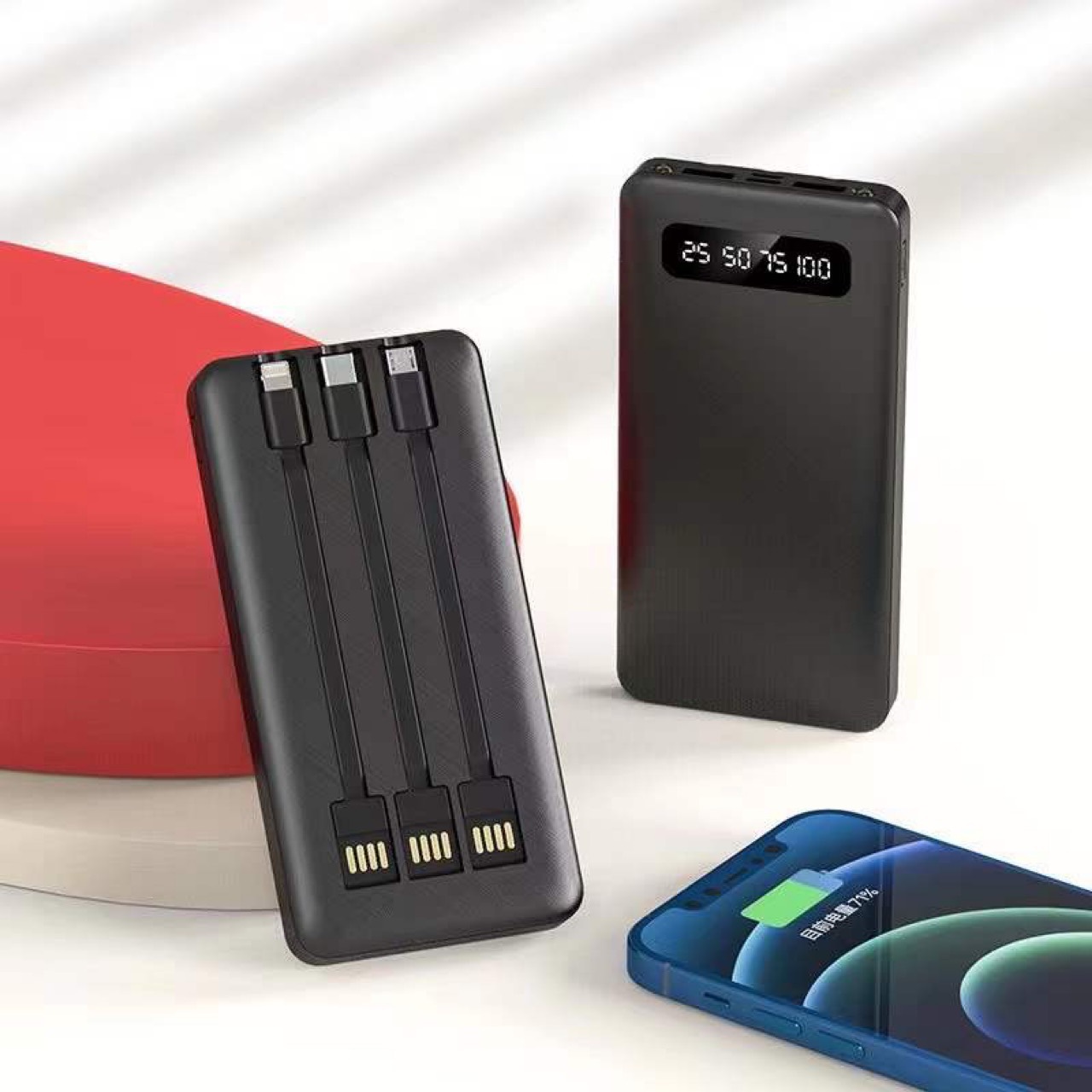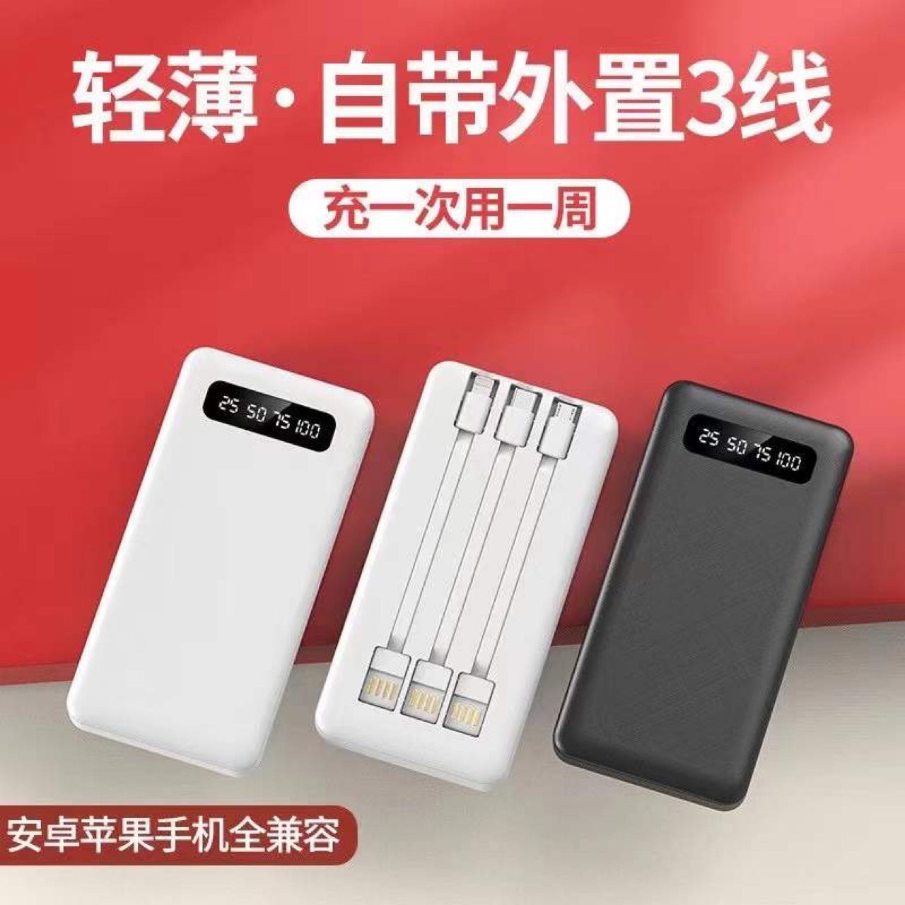 New External Three-Wire 20000MAh Mobile Power Logo Portable Three-Port Three-Output Ultra-Thin Power Bank Customization..