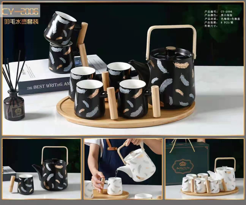 Nordic Style Marbling Ceramic Water Set Set Gift Box Packaging Coffee Cup Set