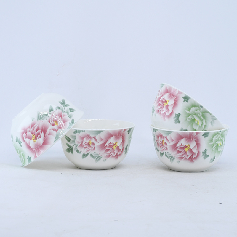 4.5-inch white porcelain stickers red peonies: 10 boxed