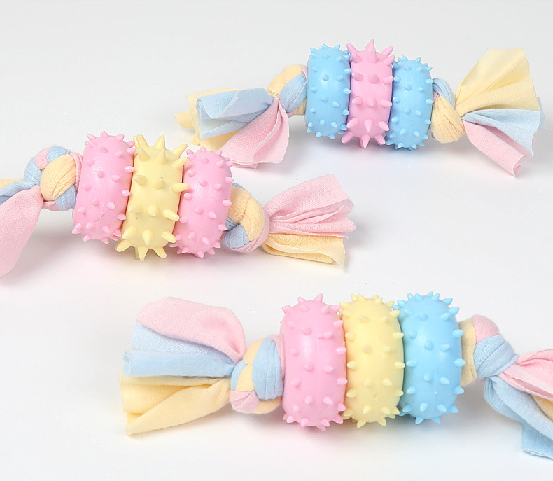 Pet Toy TPR Dog Toy Molar Teeth Cleaning Dog Training Interactive Three-Circle Cloth Toy