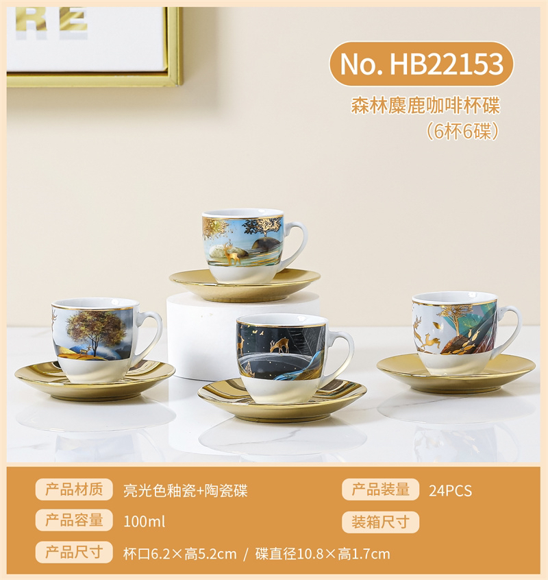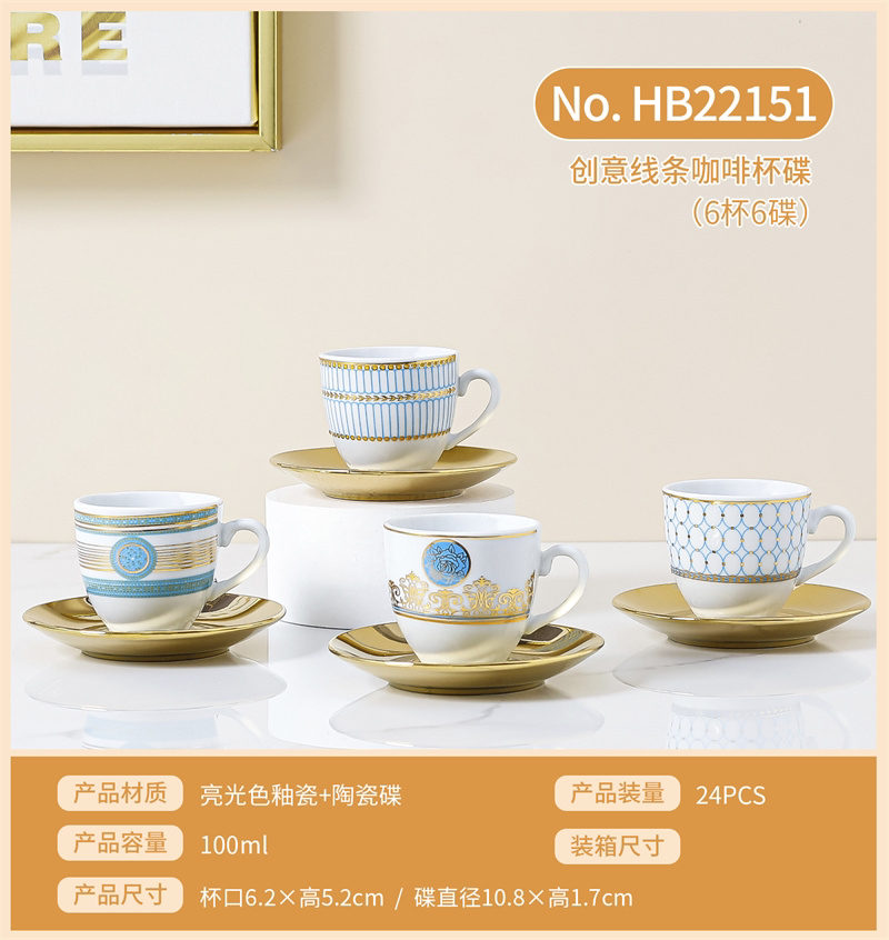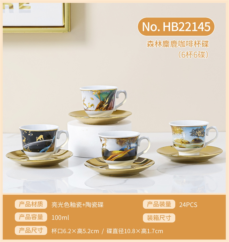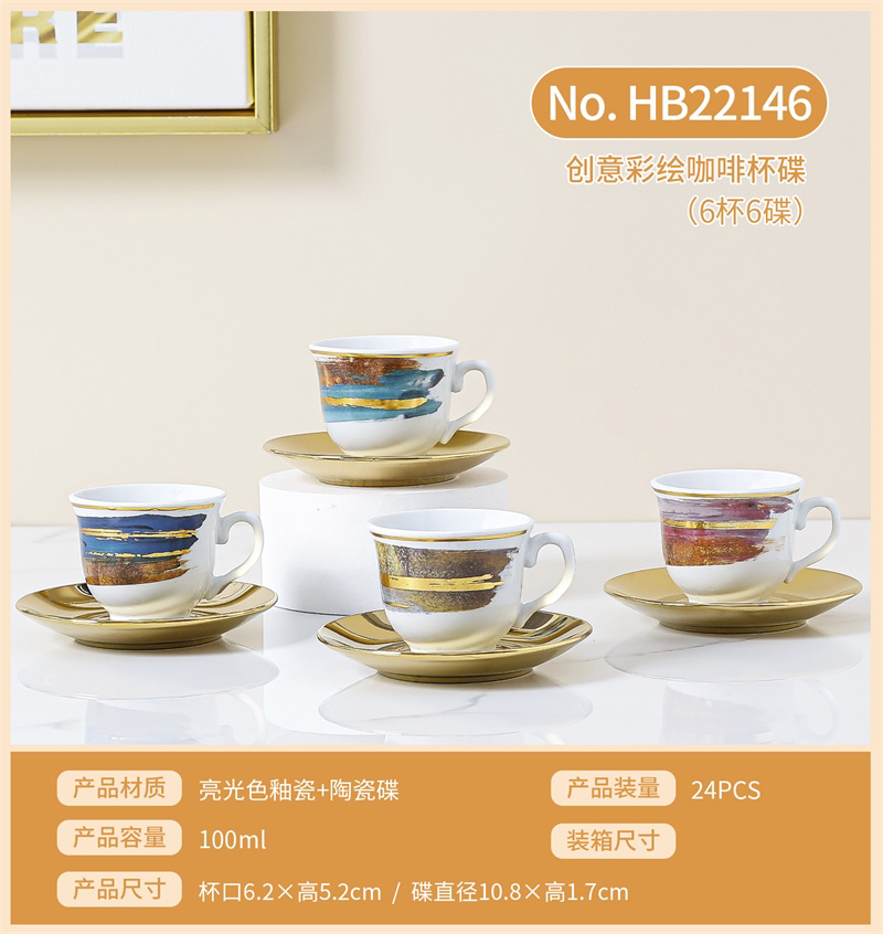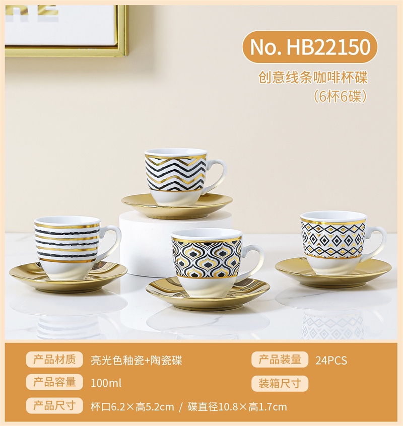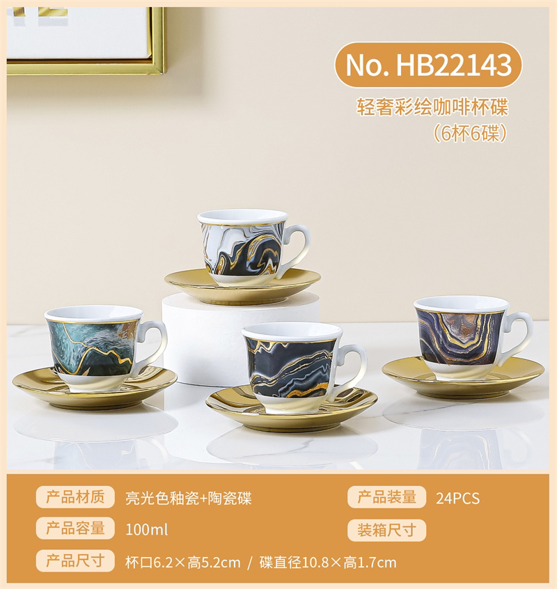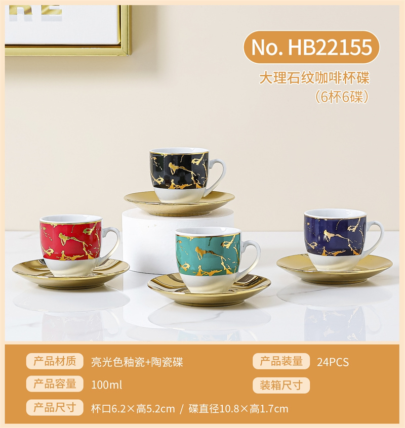 Set Electroplating Coffee Cup Cup Saucer Marbling Six Cups Six Saucers Mug Gift Box