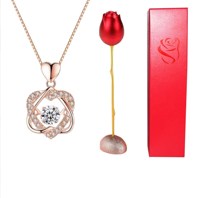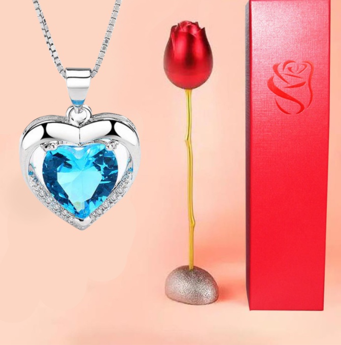 About Product:New Heart-Shaped Blue Purple Crystal Jeweled Pendant Temperament Rose Perianth Necklace Jewelry Box Foreign Trade Exclusive