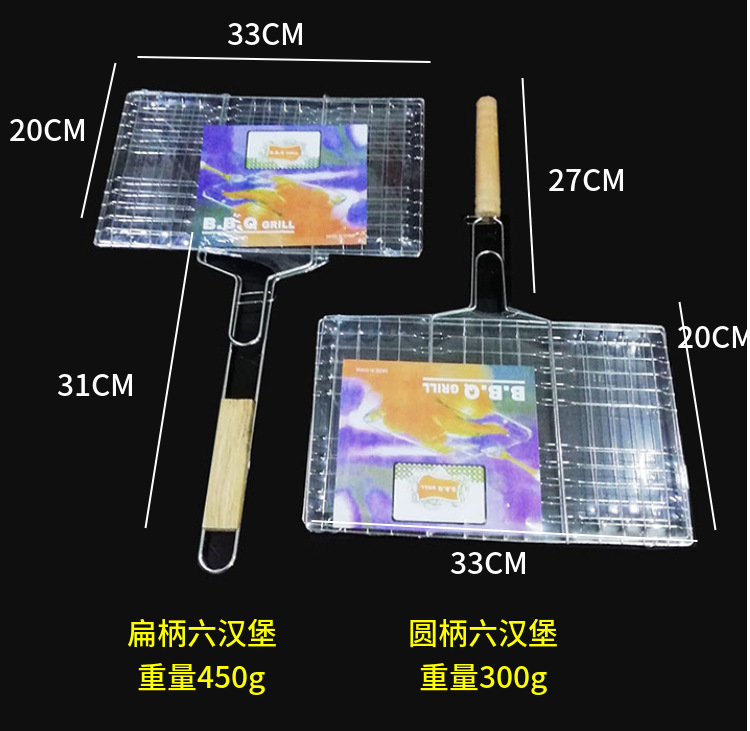 Factory Direct Sales Grilled Fish Clip Bold Hamburger Clip BBQ Barbecue Wire Grill Rack Thickened Lines BBQ Clamp Barbecue Tools