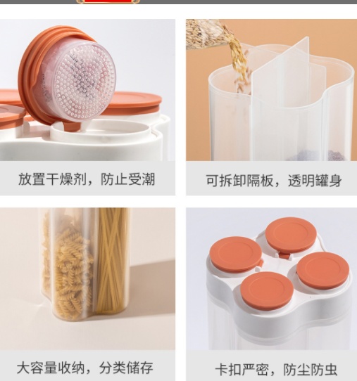 About Product:Four Grids Separated by Multigrain Storage Tank Foreign Trade Exclusive Supply