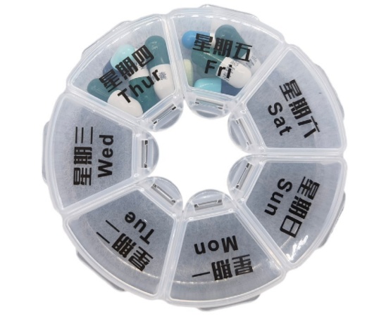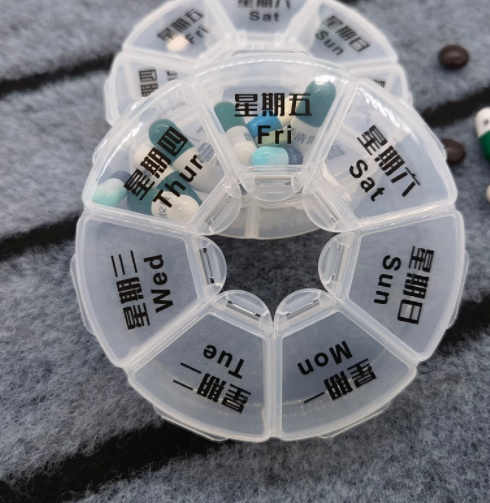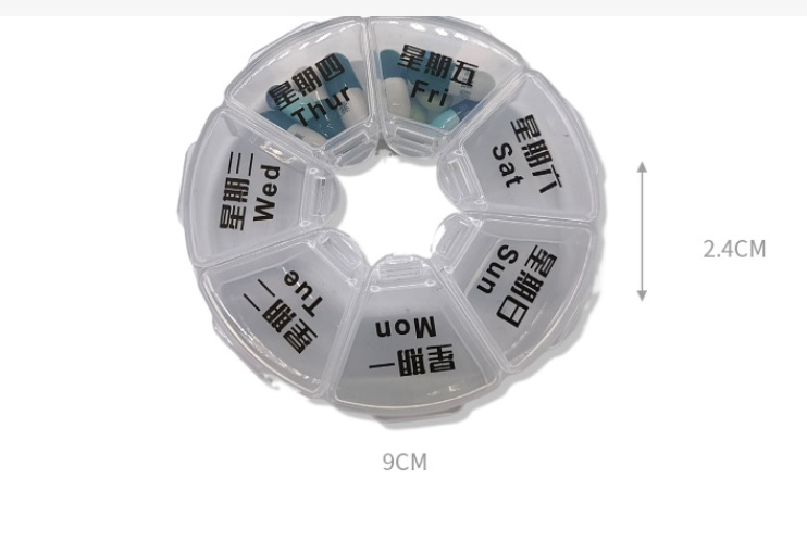 About Product:Transparent round 7-Day Pill Box for Foreign Trade