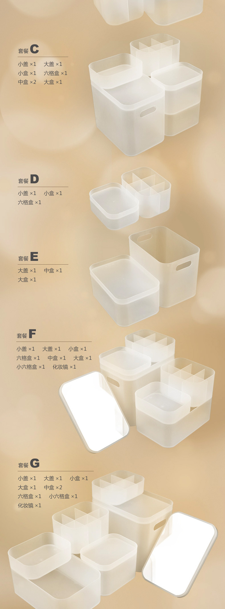 | Free combination frosted storage box/storage box -- 7-piece set (AO178-C) | Packing quantity: 18 sets |