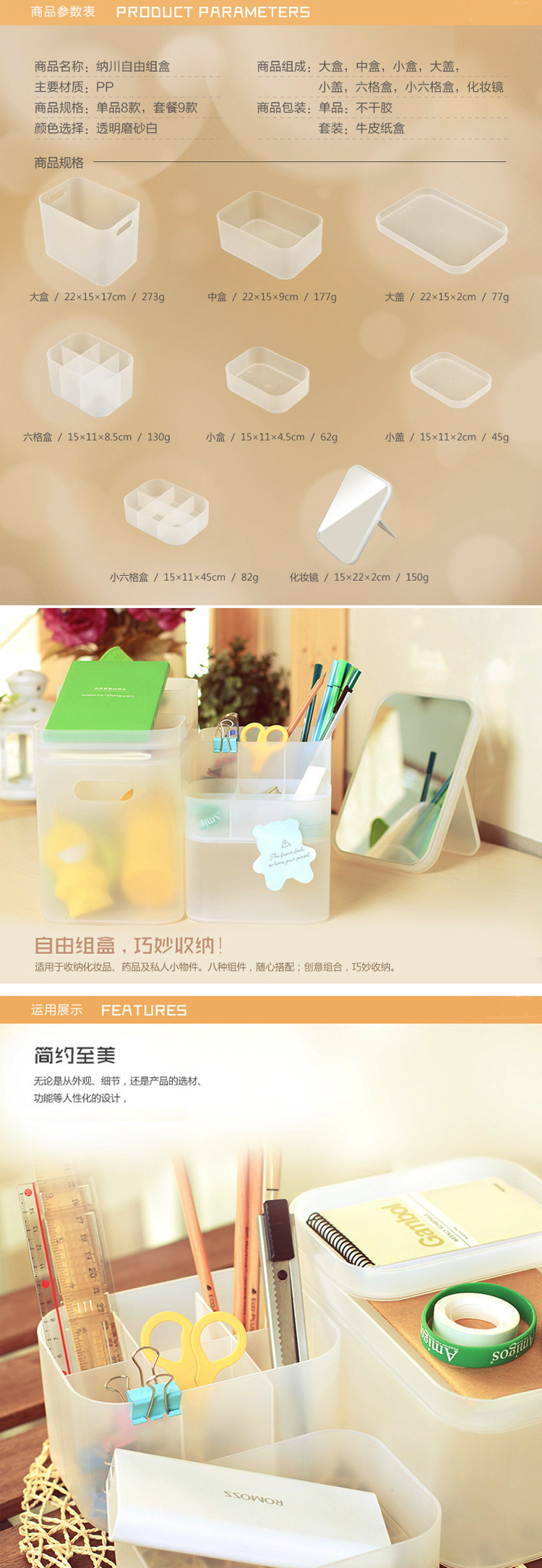 | Product Name: combined frosted cosmetics storage box/multi-purpose storage box-9-piece set (AO178-G) | Packing quantity: 12 sets |