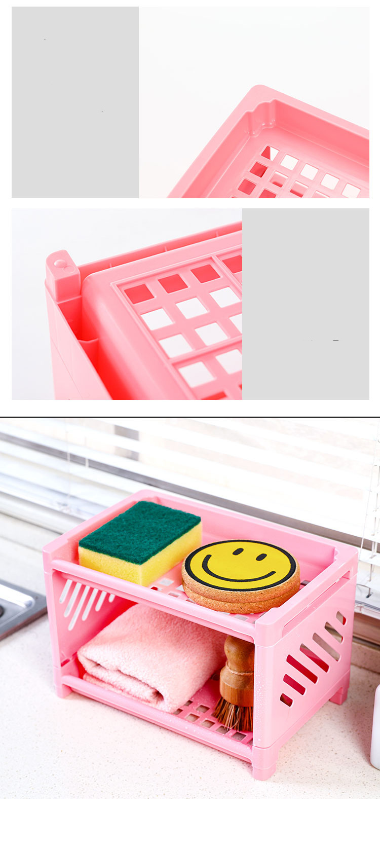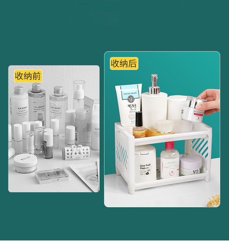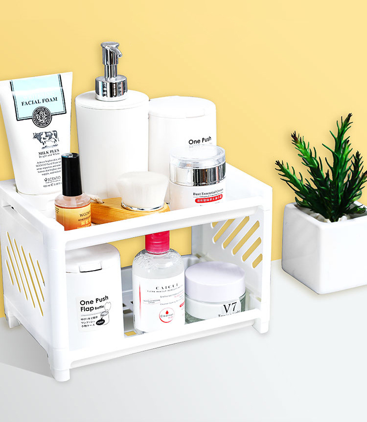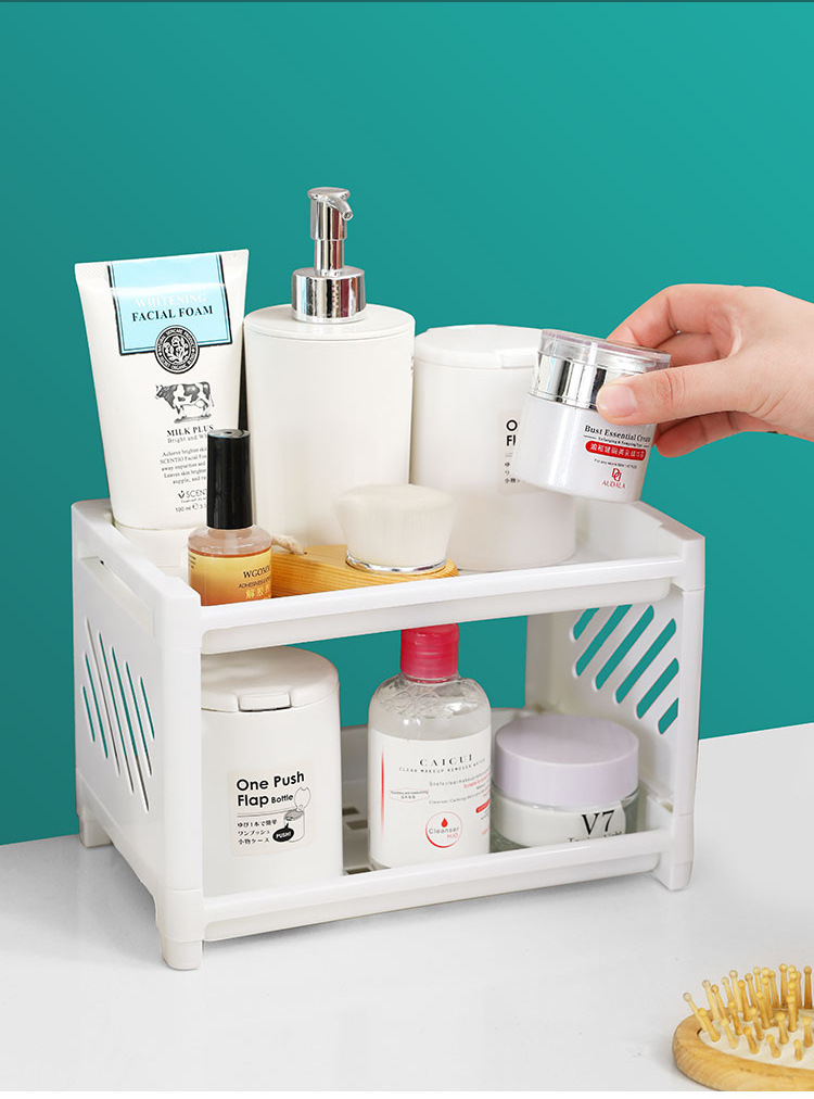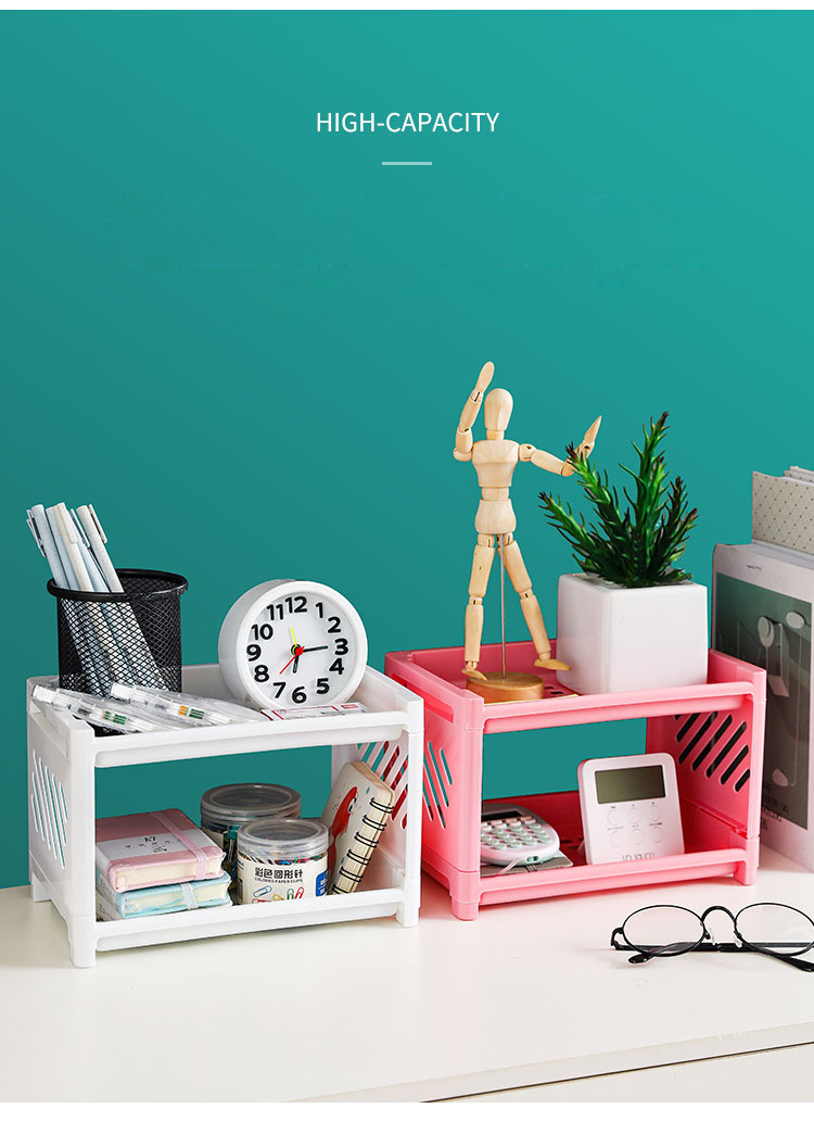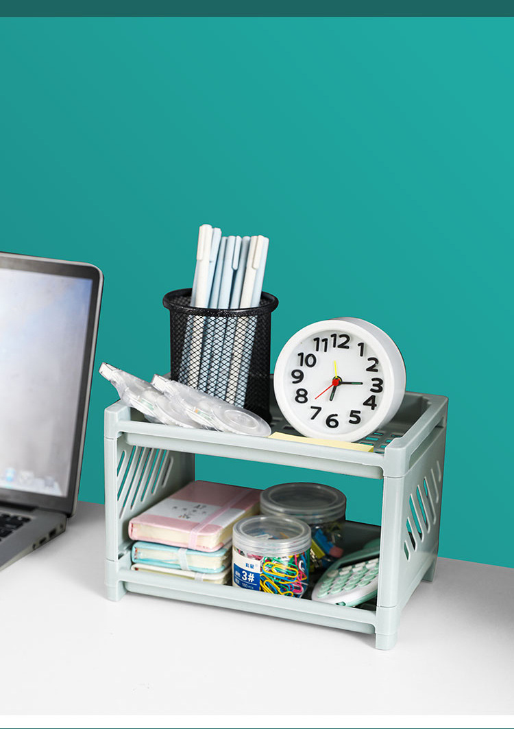 Dormitory Desktop Double-Layer Plastic Storage Rack Office Stationery Cosmetic Storage Rack Kitchen Bathroom Storage Rack