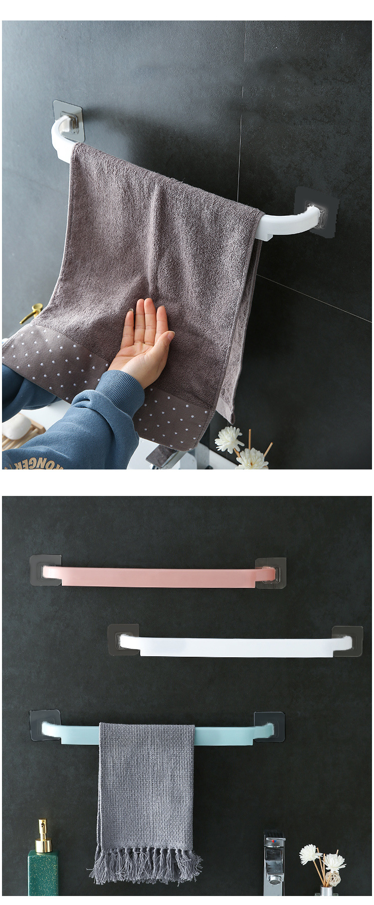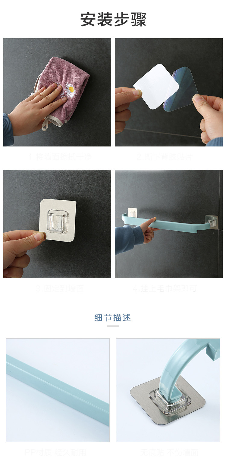 Bathroom Towel Rack Punch-Free Toilet Paste Kitchen Single Bar Plastic Rag Rack Towel Bar Storage Rack