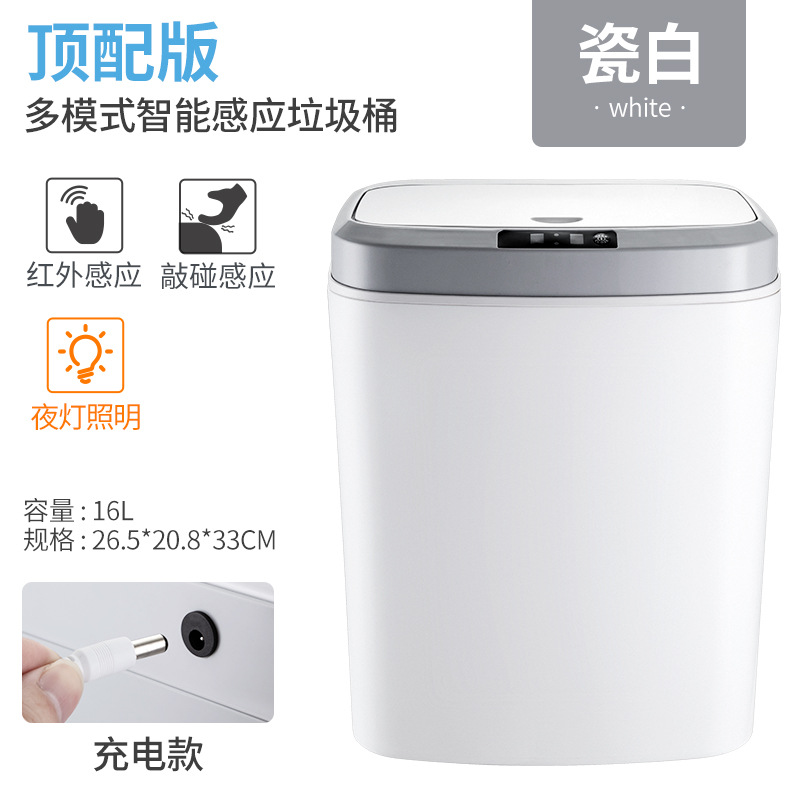 white 16l usb charging (infrared sensor + button + knock touch rubbish bin sensor) high configuration