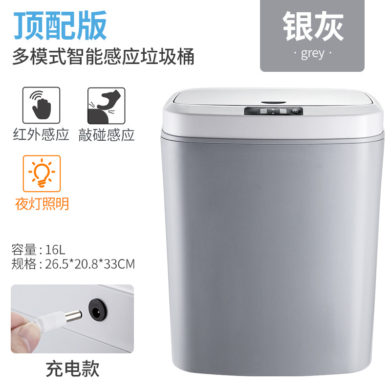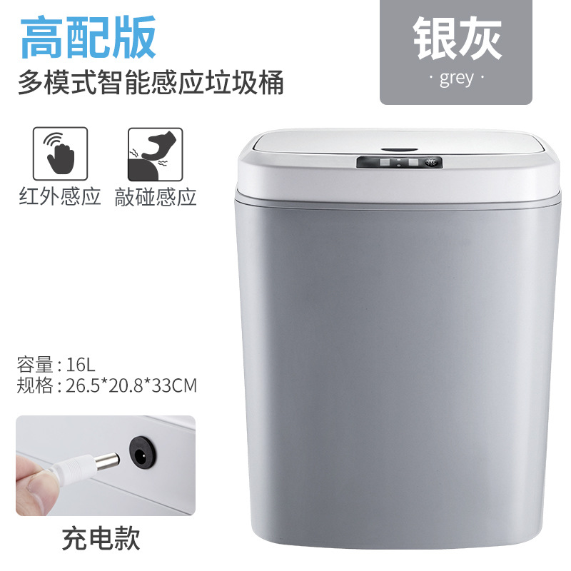 gray 16l usb charging (infrared sensor + button + knock touch rubbish bin sensor) high configuration