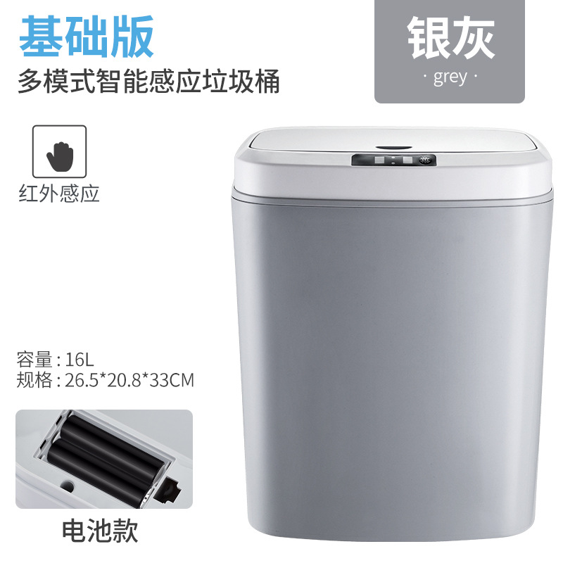 gray 16l battery version (infrared + button + knock rubbish bin sensor + night light) top matching type