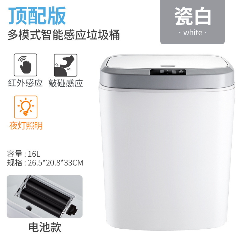 white 16l battery version (infrared + button + knock rubbish bin sensor + night light) top matching type