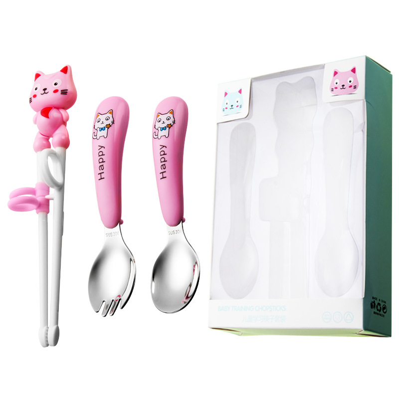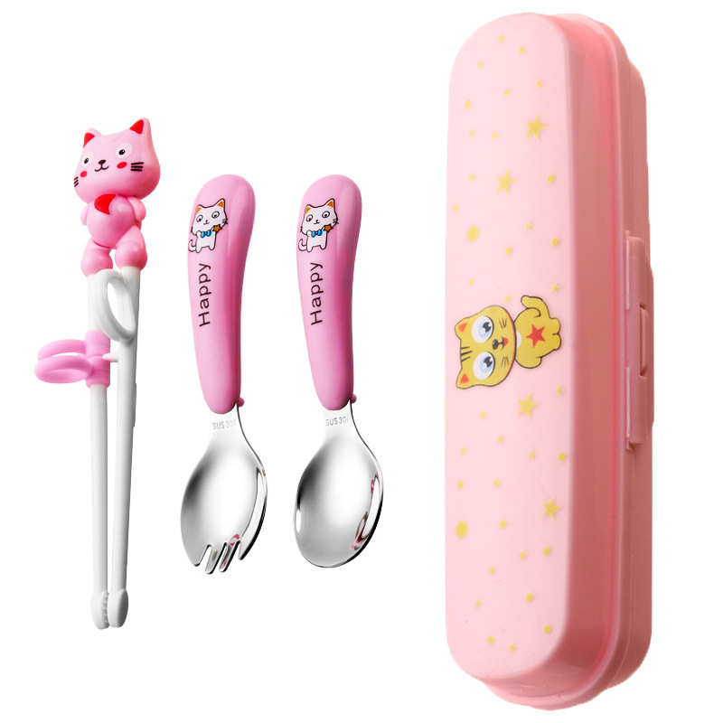 yellow cat-pink-fork spoon and chopsticks-powder box
