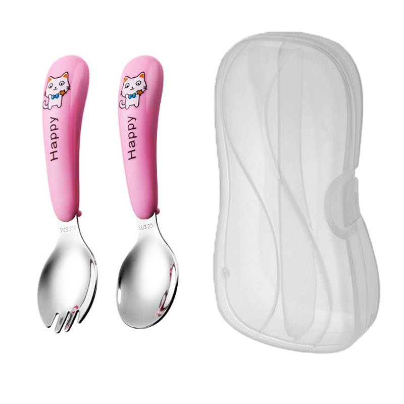 yellow cat-pink-curved fork spoon and chopsticks-powder box