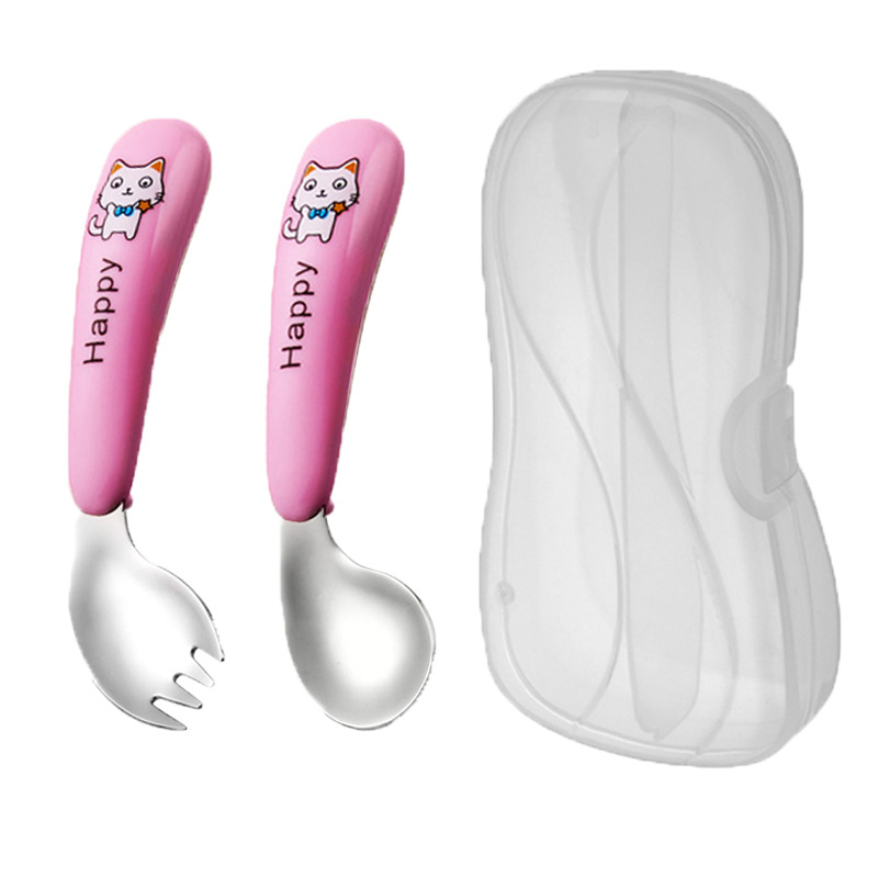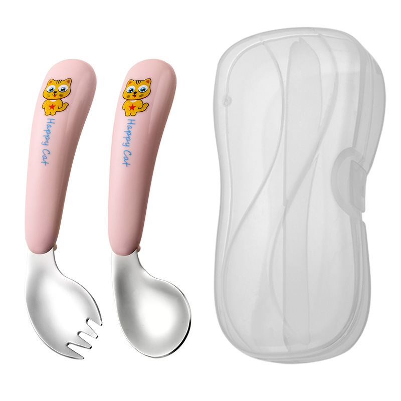 yellow cat-pink-curved spork-transparent box