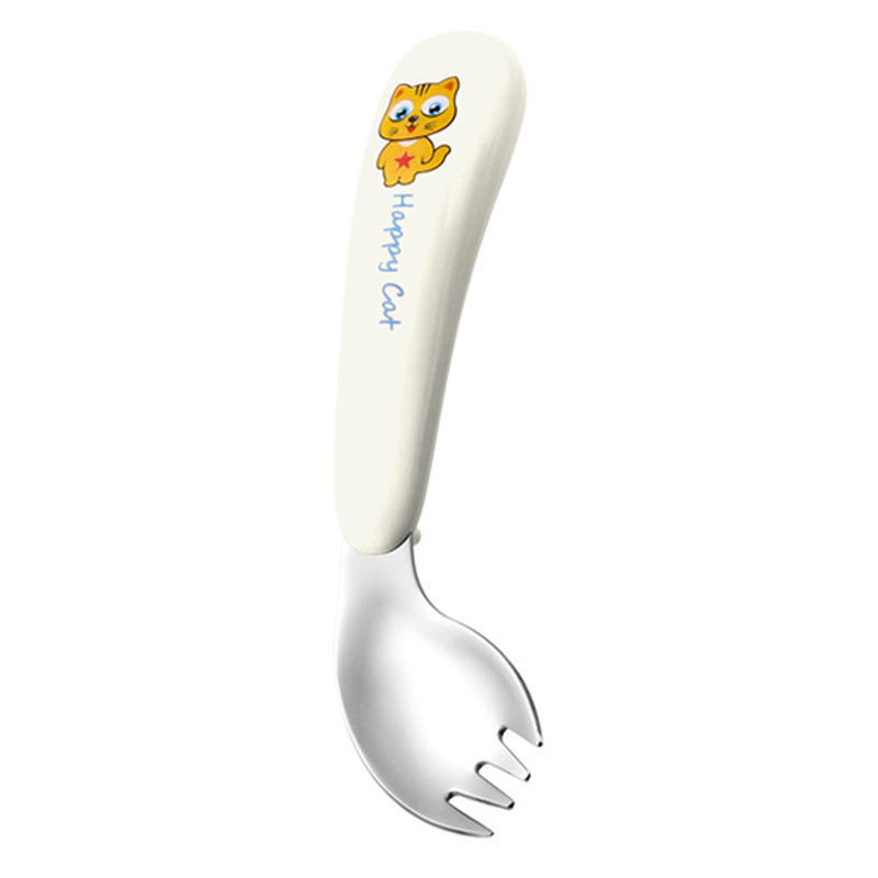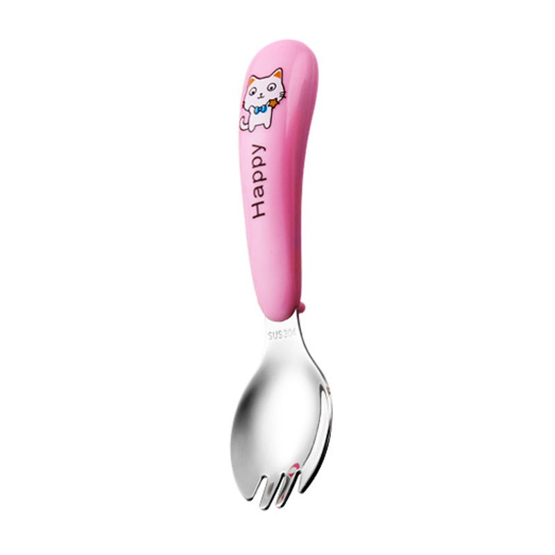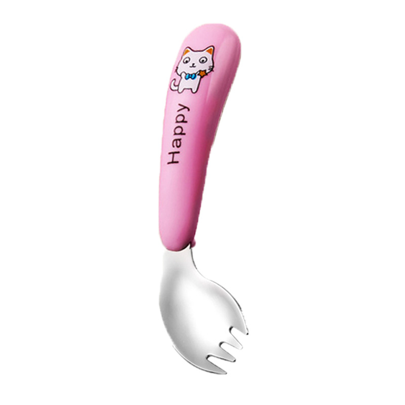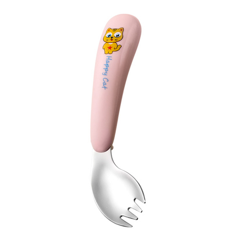 yellow cat-pink-curved fork