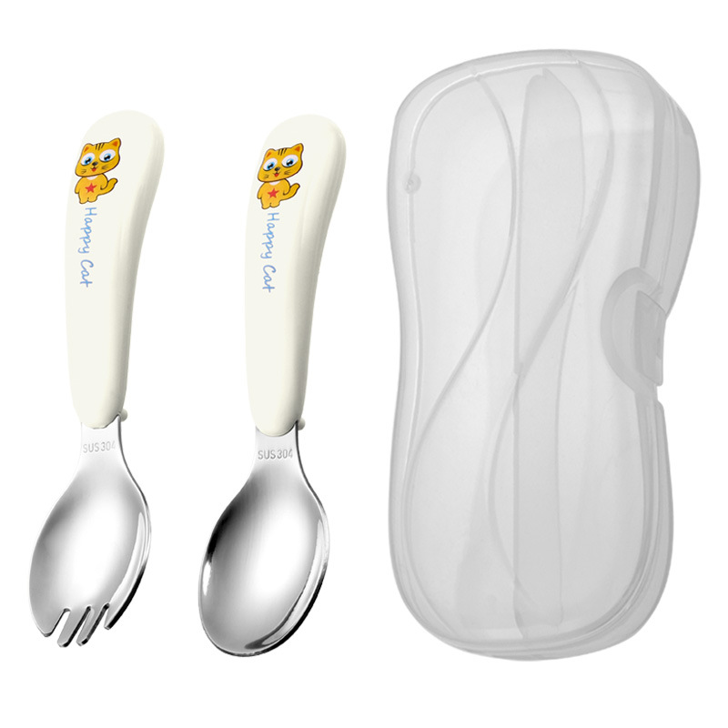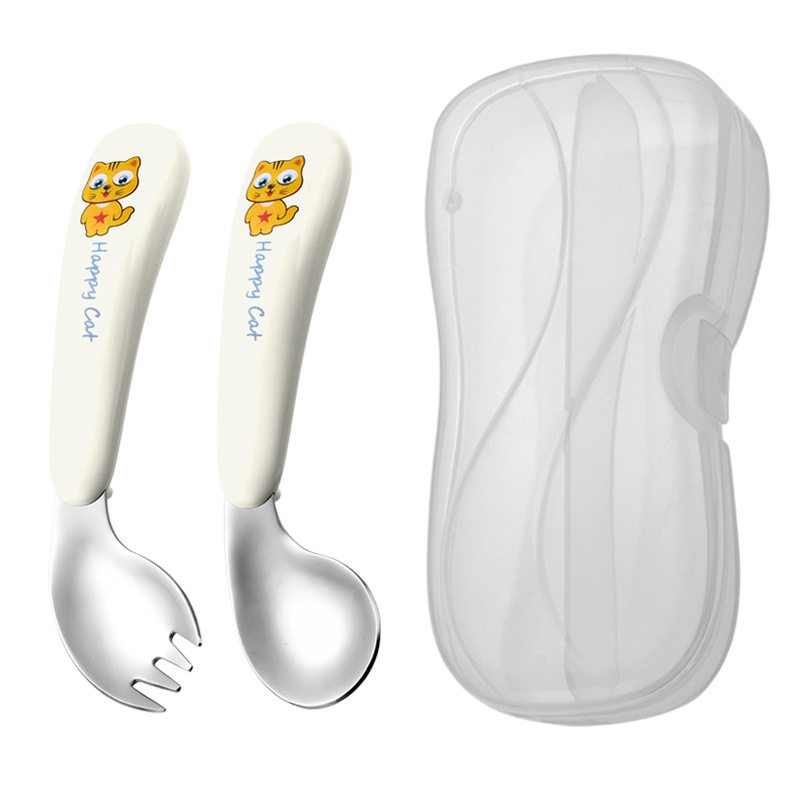 yellow cat-white-curved fork spoon and chopsticks-white box