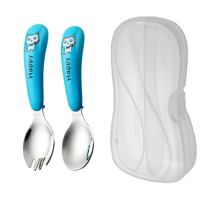 white cat-blue-fork spoon and chopsticks-color box