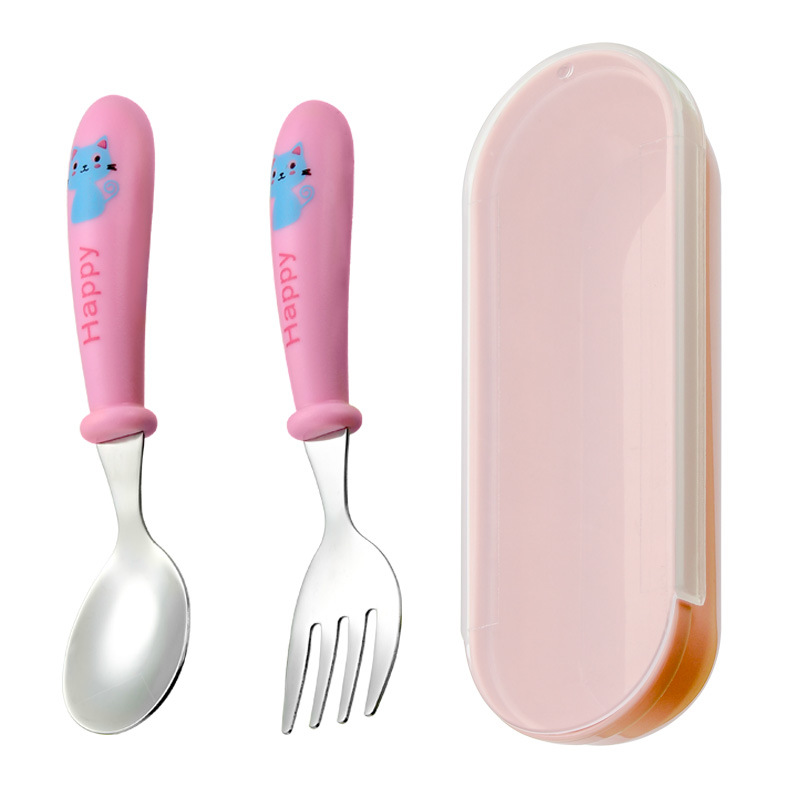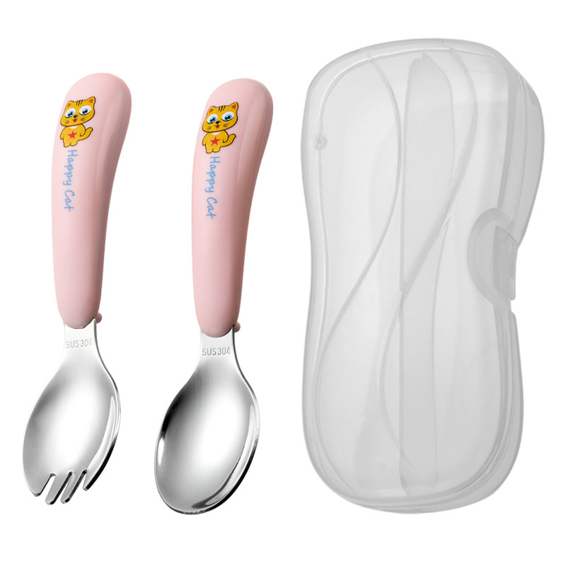 yellow cat-pink-curved spork-transparent box