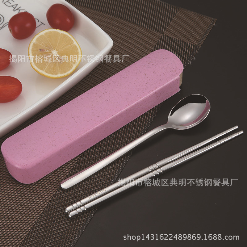 304 spoon + chopsticks + pink box
