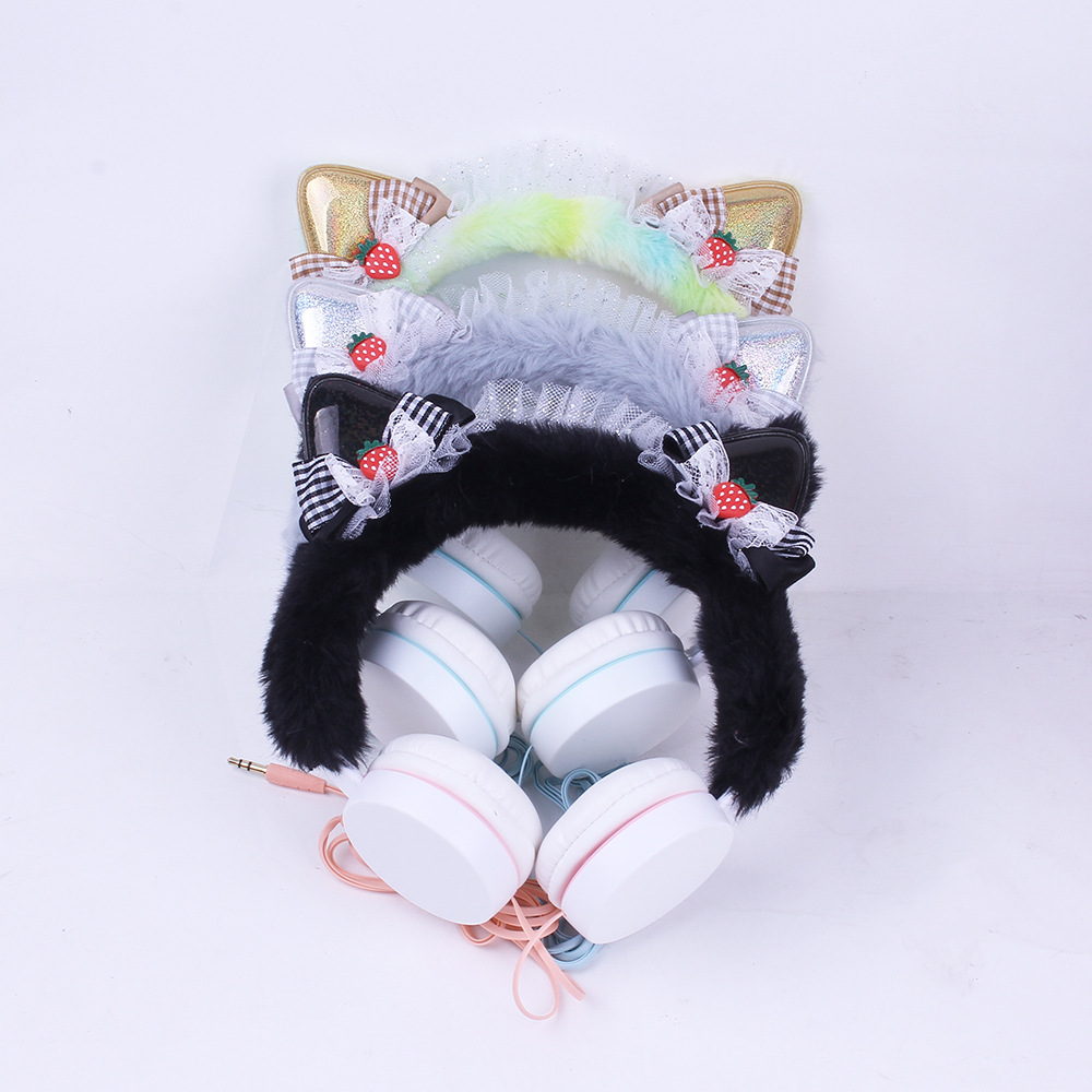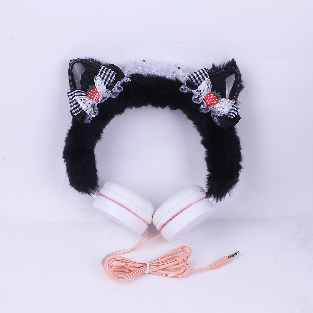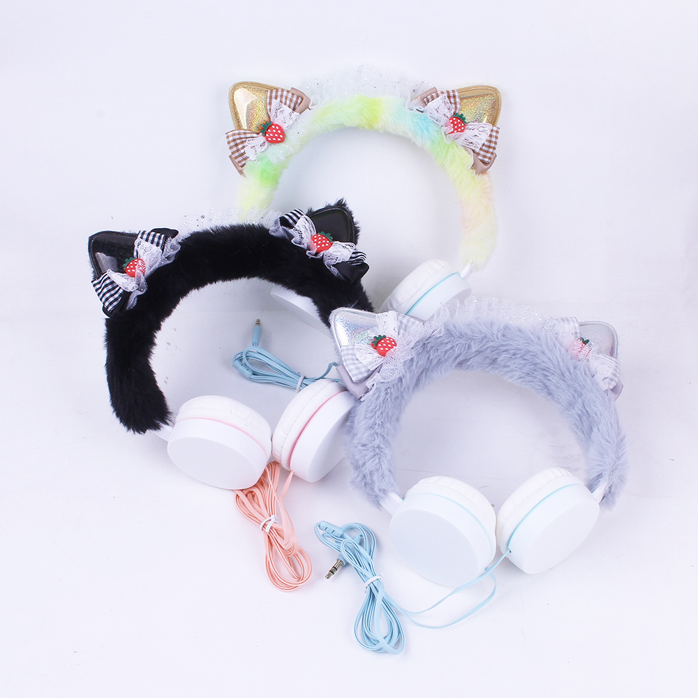 314 Cartoon Cat Ear Shape Headset Headset with Line Bow Plush Earplugs Children's Net Red Personality Fashion..