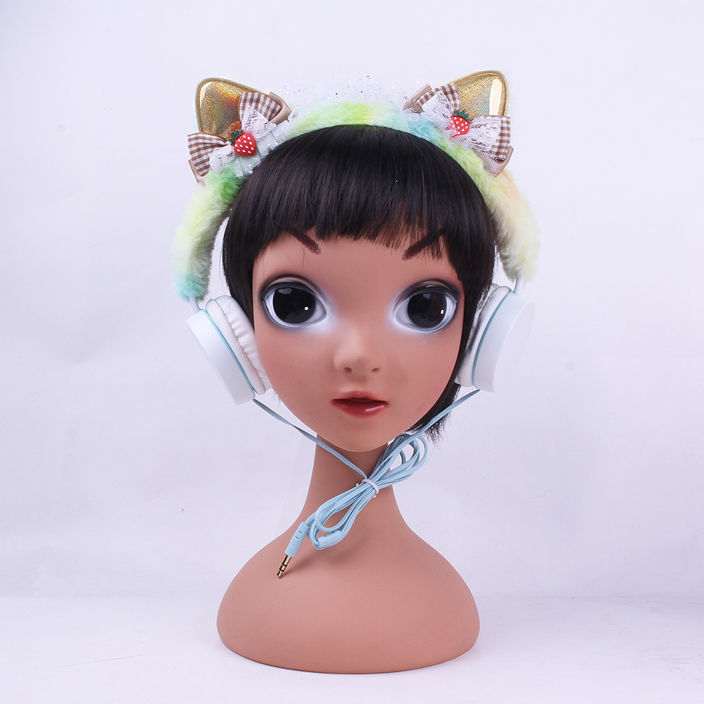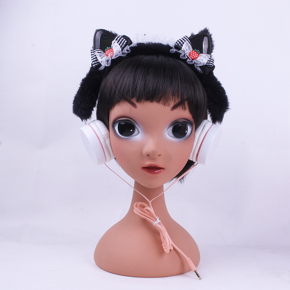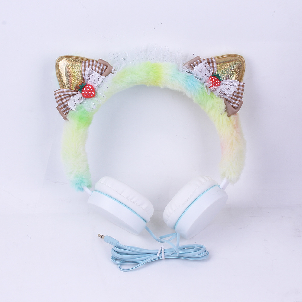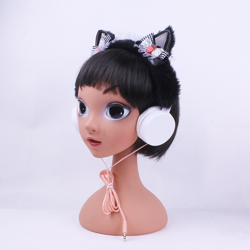 314 Cartoon Cat Ear Shape Headset Headset with Line Bow Plush Earplugs Children's Net Red Personality Fashion..