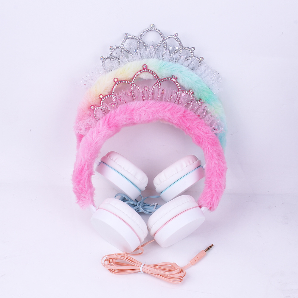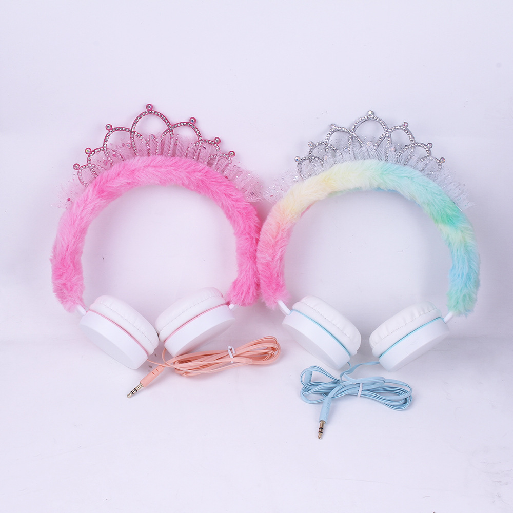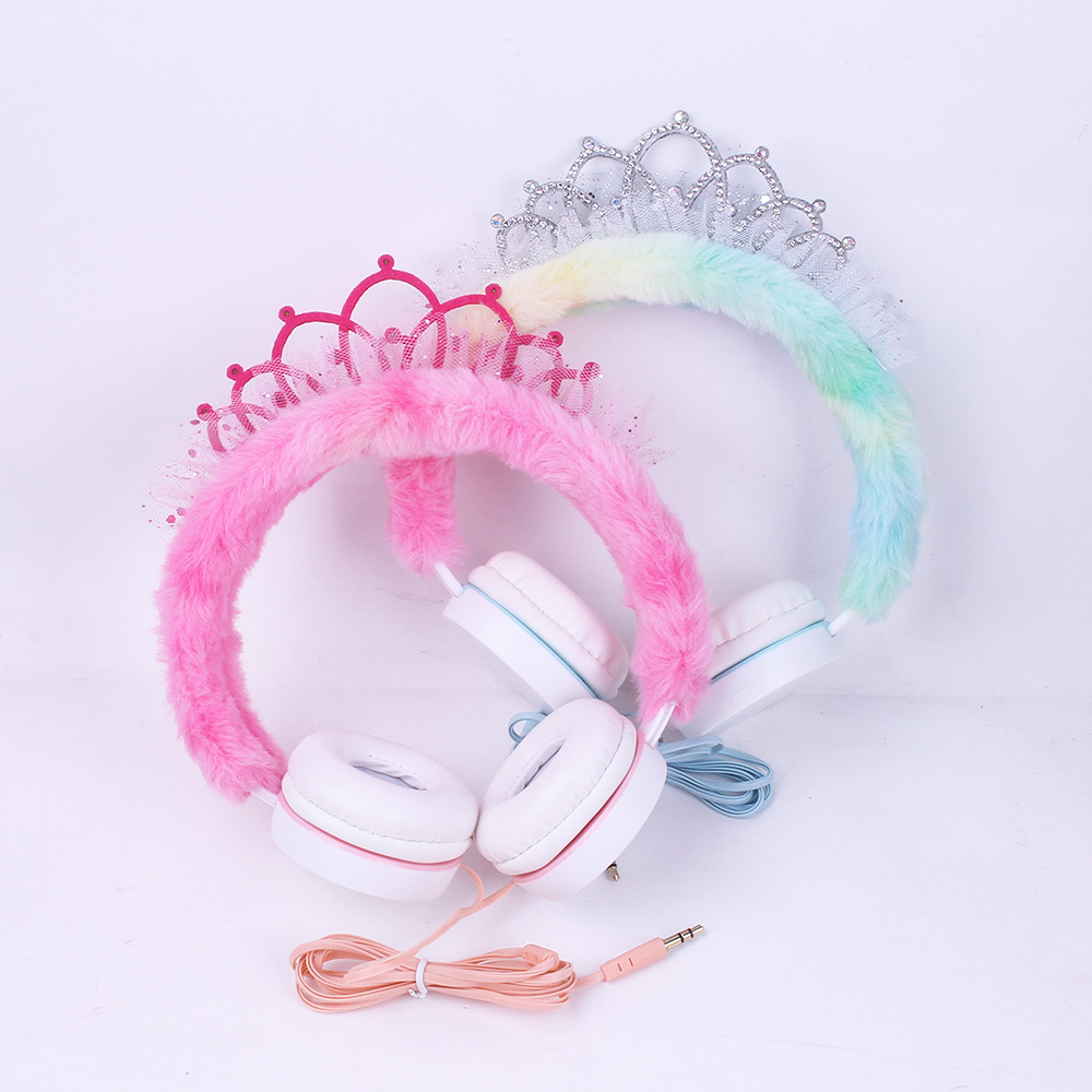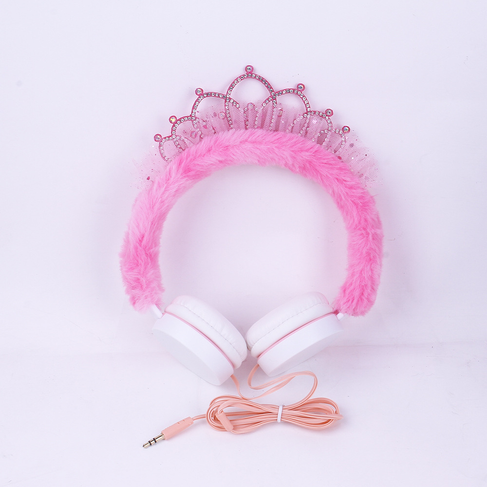 315 Cartoon Crown Wired Headset Children's Cute Plush Headset Student Gift Foreign Trade Wholesale..