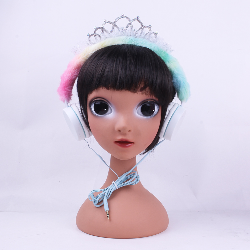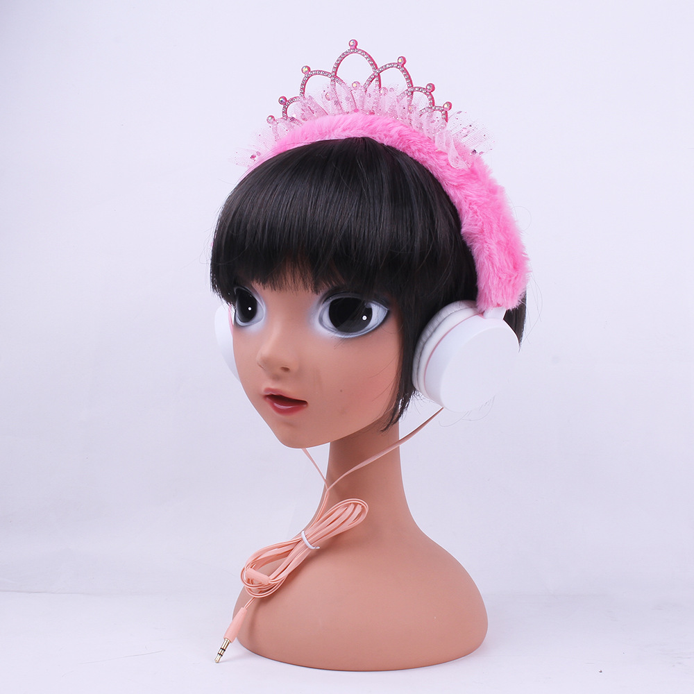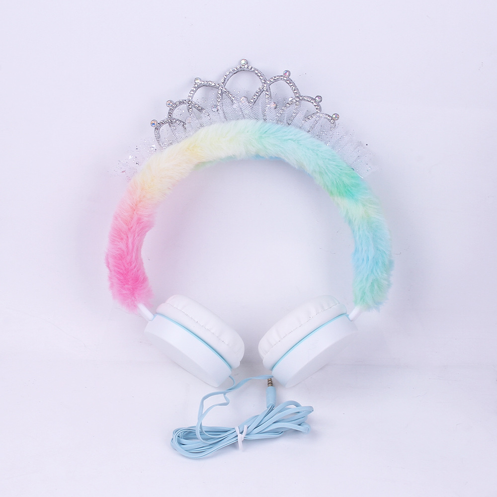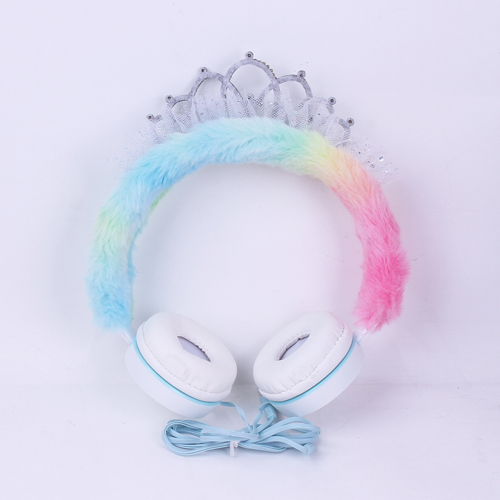 315 Cartoon Crown Wired Headset Children's Cute Plush Headset Student Gift Foreign Trade Wholesale..