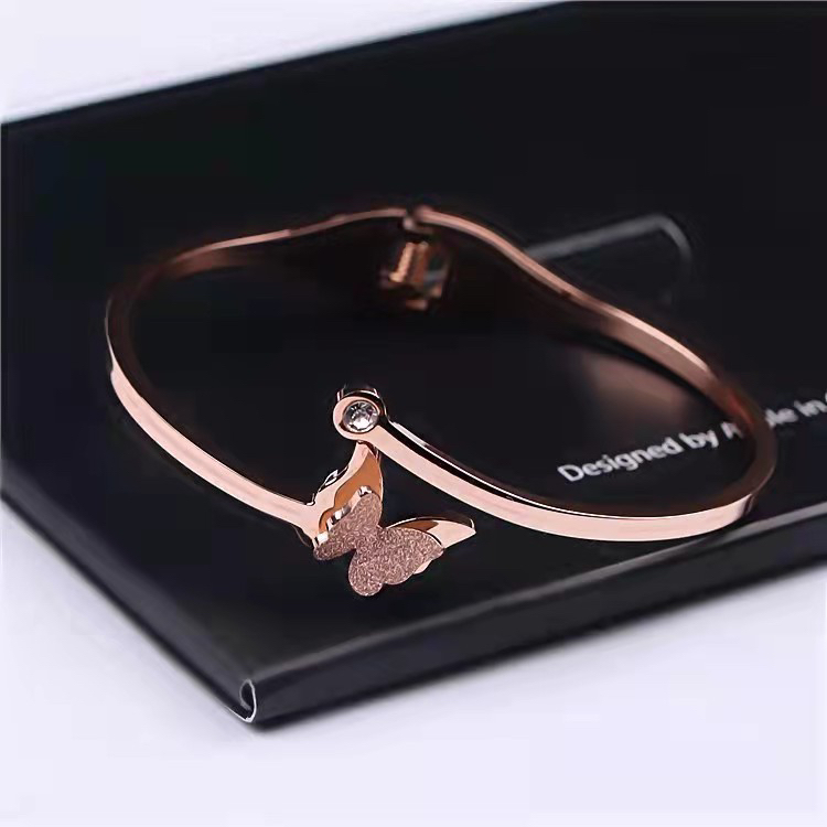 Korean Style Hot Selling All-Match Rose Gold Titanium Steel Butterfly Bracelet Women's Simple Open Mesh Red Bracelet Bracelet Jewelry Wholesale