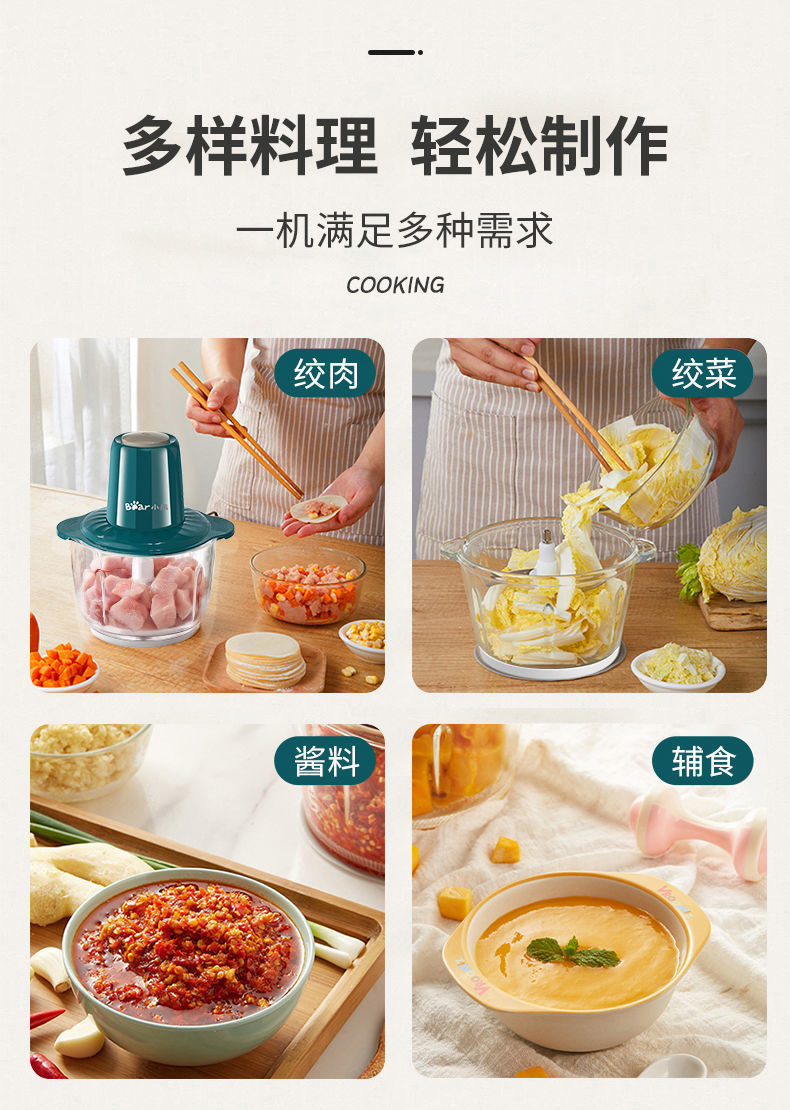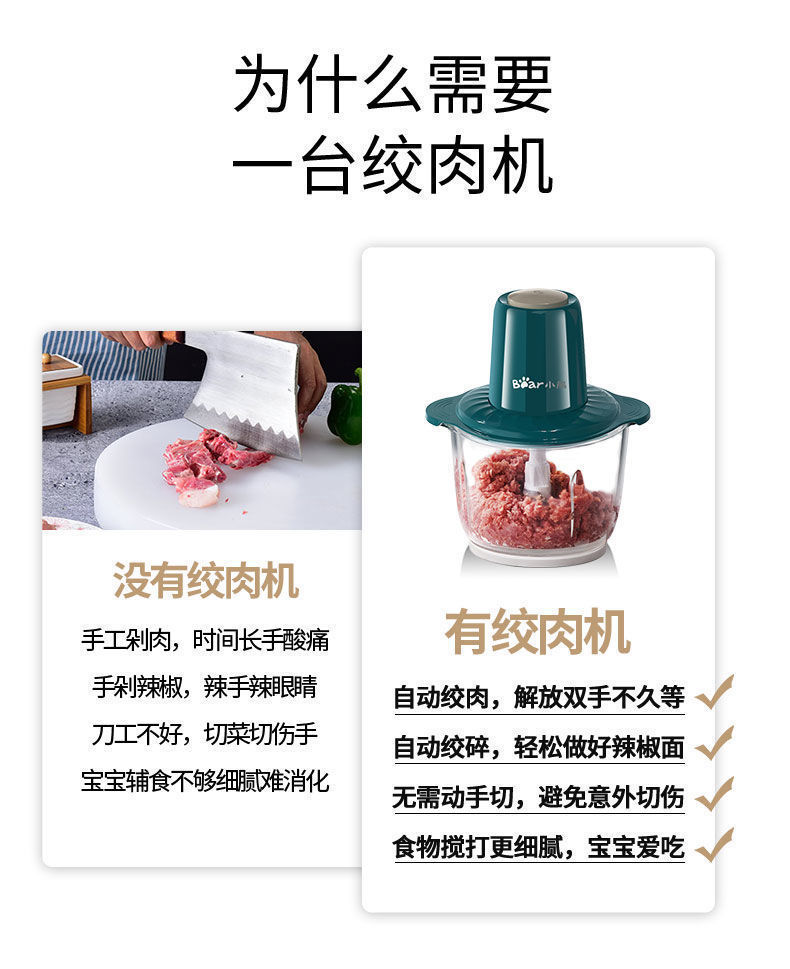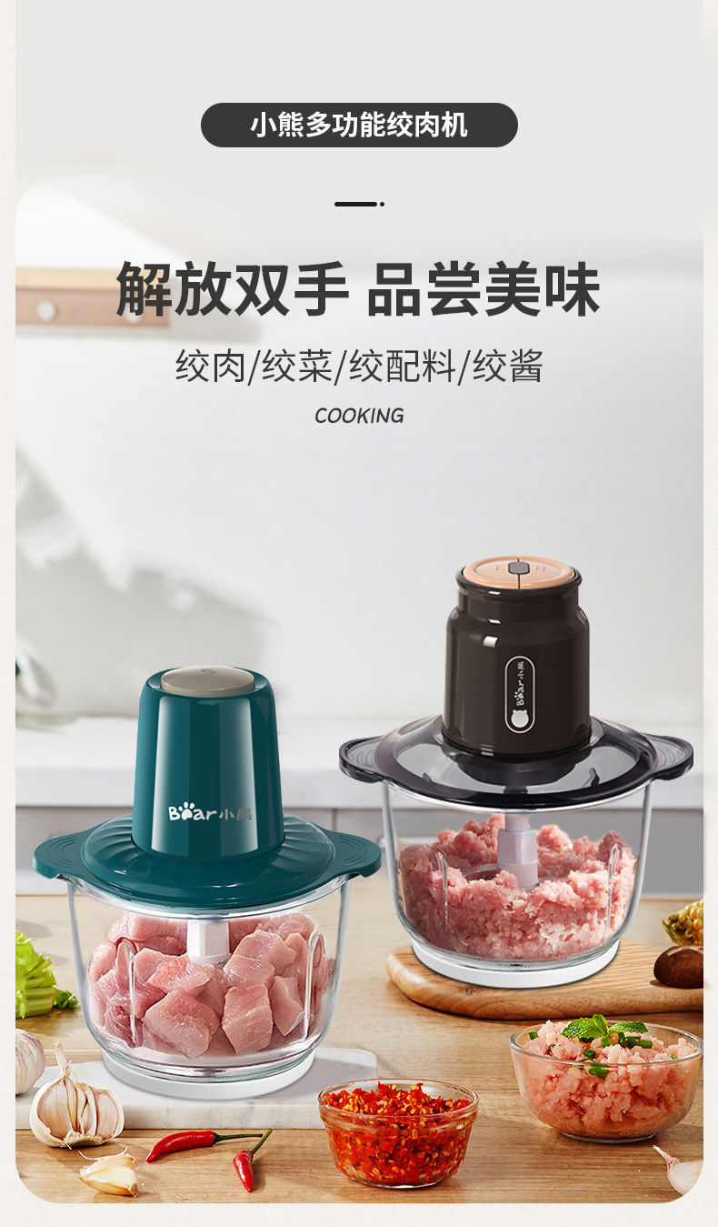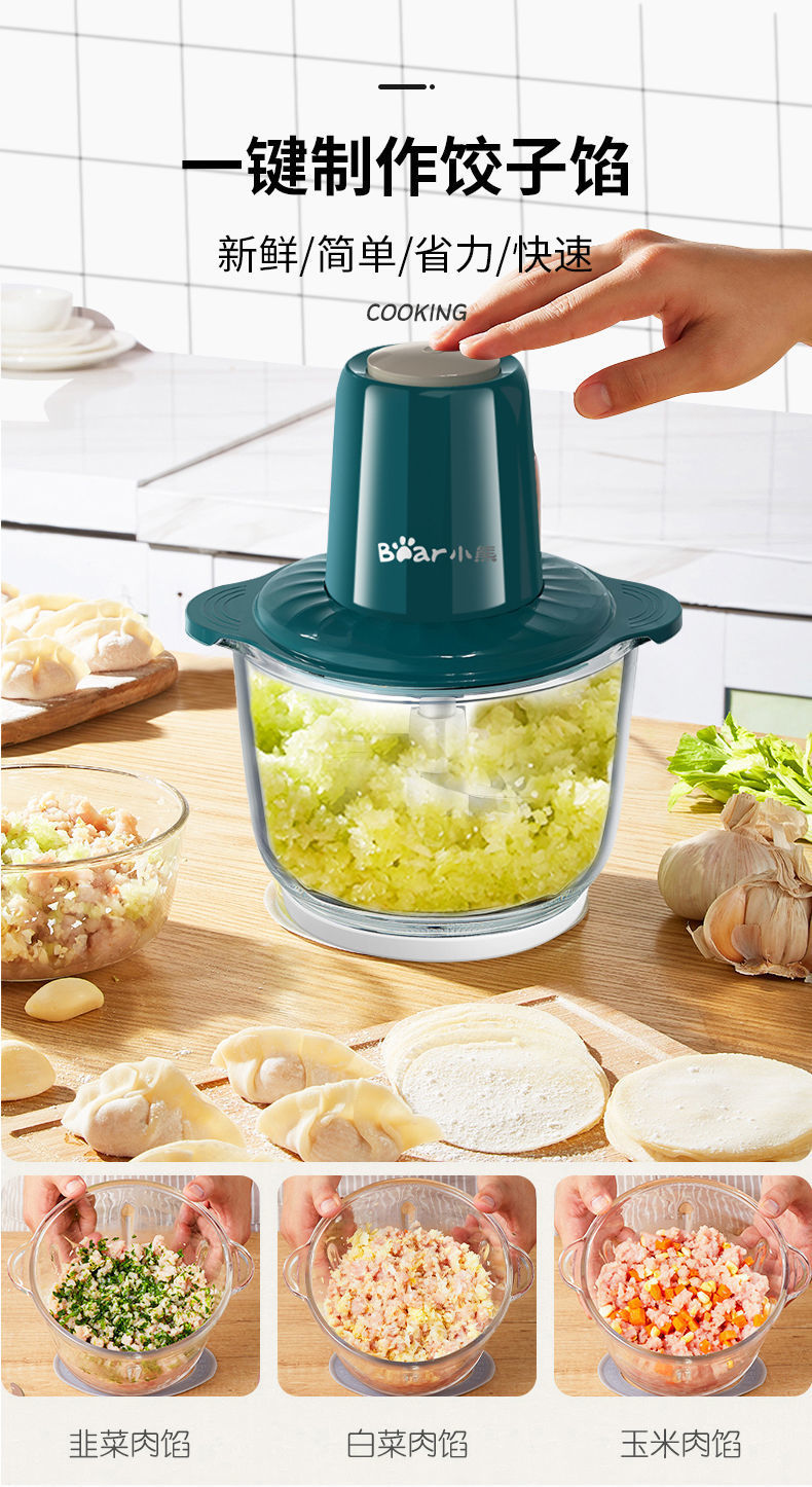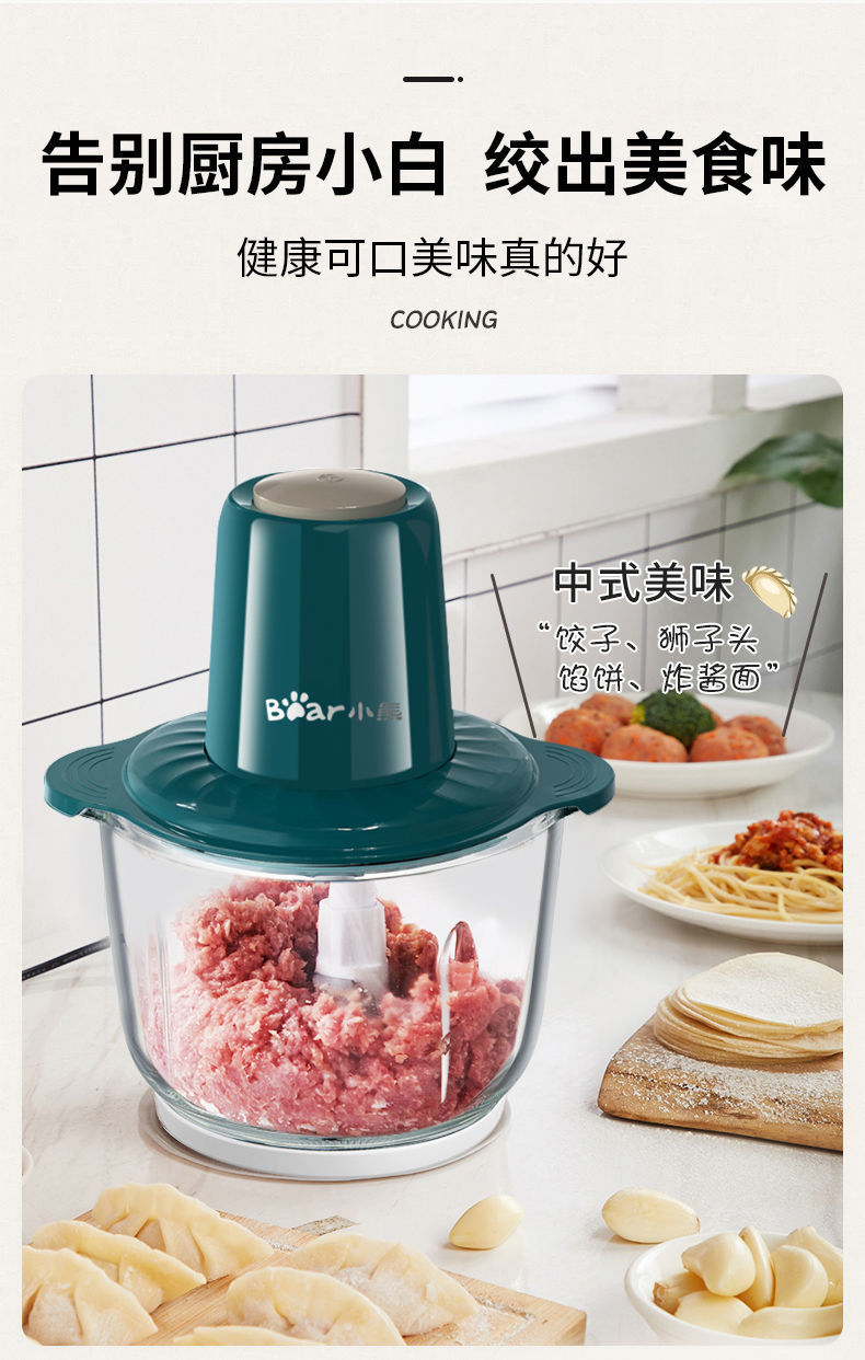 Bear Meat Grinder Household Large Capacity Dumpling Stuffing Electric Multi-Function Electric Cooker Meat Mashed Garlic Stirring Minced Vegetables