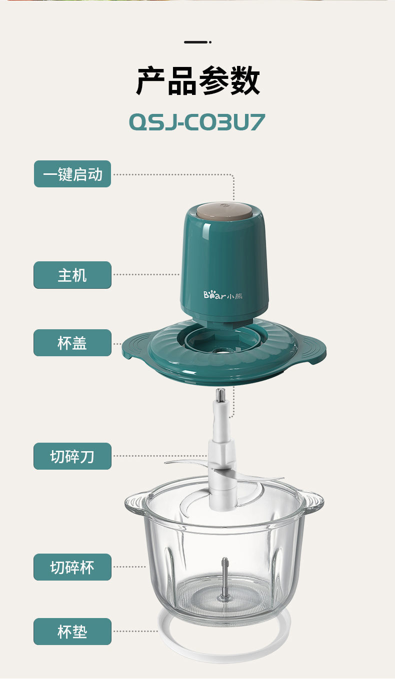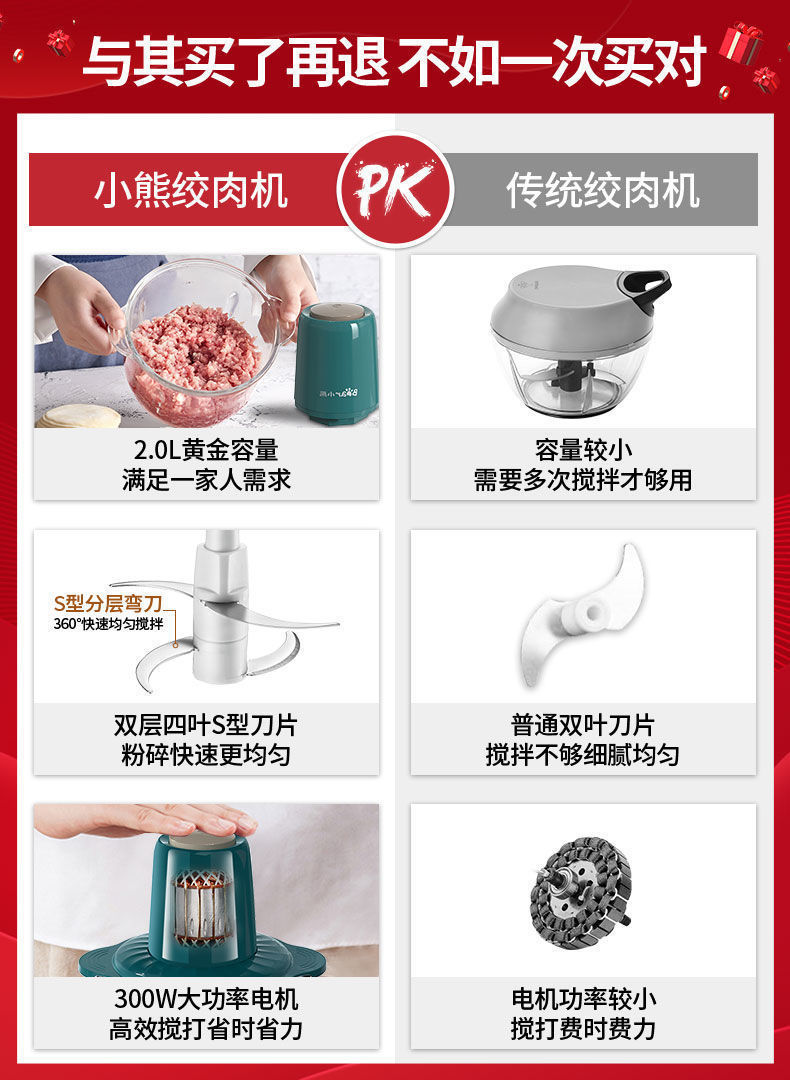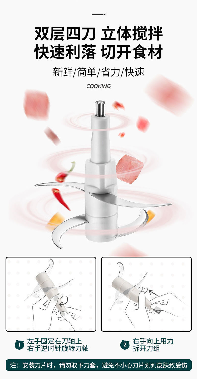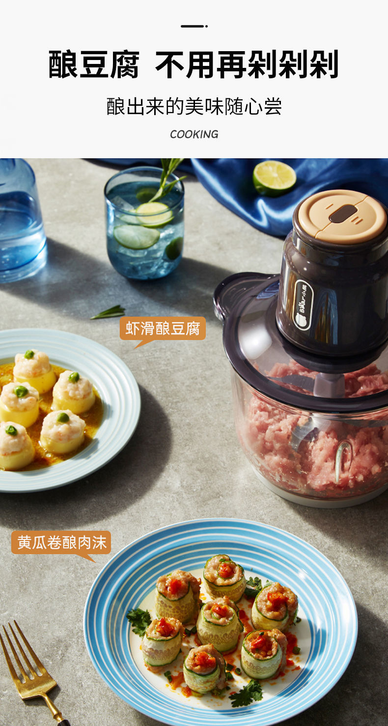 Bear Meat Grinder Household Large Capacity Dumpling Stuffing Electric Multi-Function Electric Cooker Meat Mashed Garlic Stirring Minced Vegetables