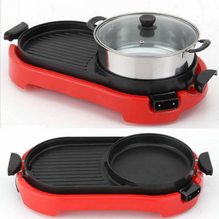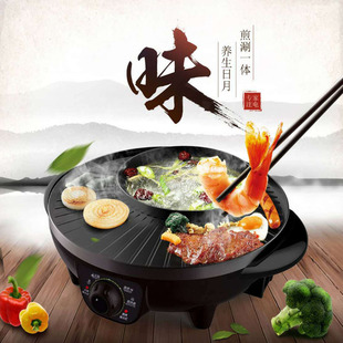 Multi-Functional Student Fried Roast All-in-One Pot Dormitory Electric Wok Smoke-Free Non-Stick Household BBQ Hot Pot Fried Soup Fried