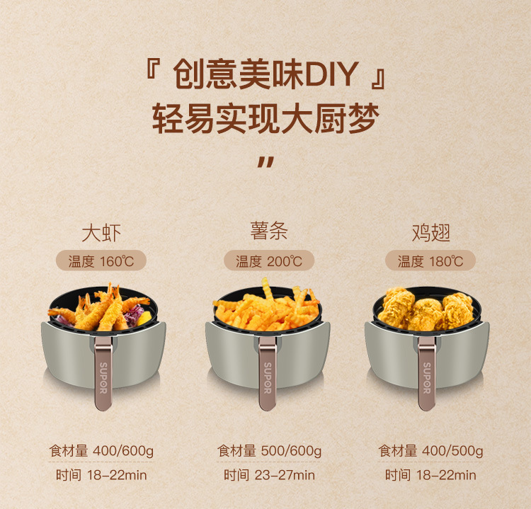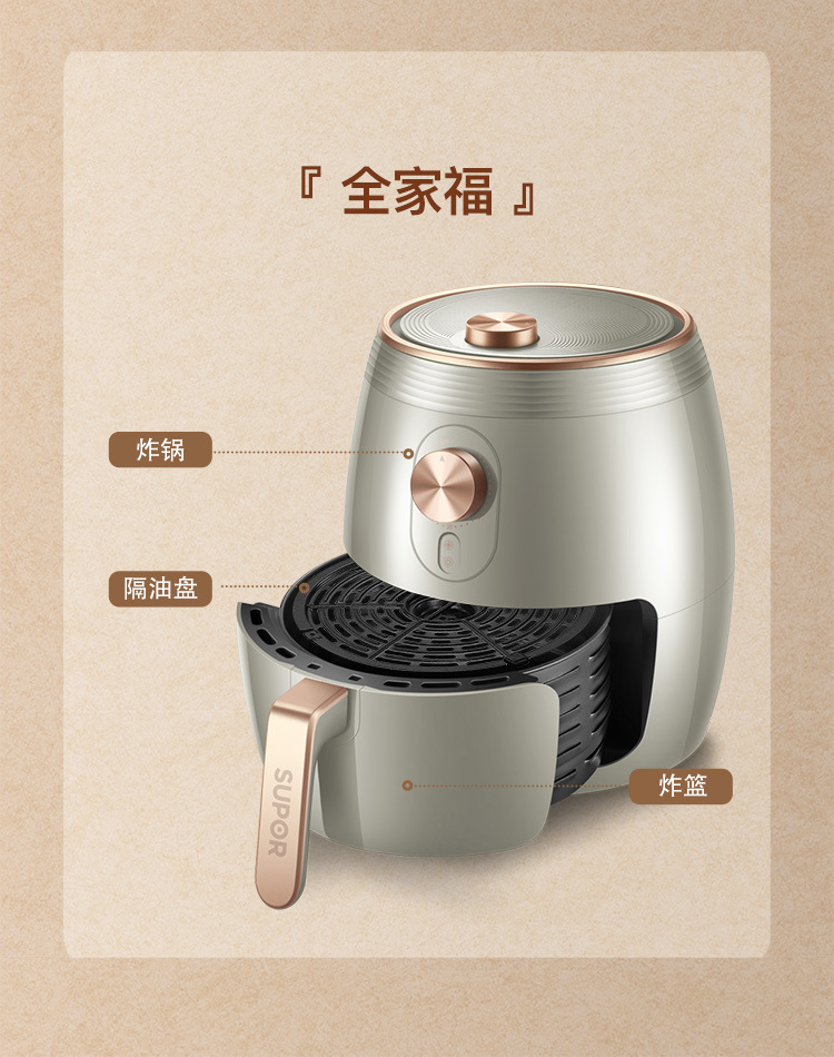Applicable to Supor Air Fryer 3.7L Large Capacity Household Multi-Functional Smoke-Free Deep Frying Pan Frying Pan Potato