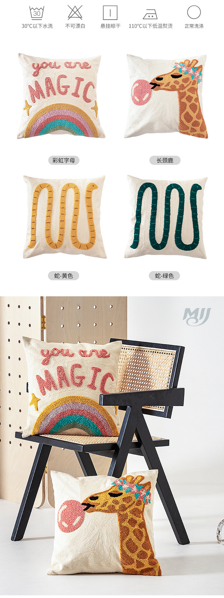 | Giraffe Canvas Embroidered Pillow Cover | 45x45 | Approximately 250 grams | Individual PE bag packaging | 23x22x2 | 80 pieces/unit | 50x40x40 |
