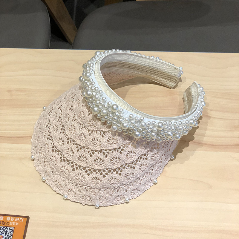 Hat Female Summer Pearl Lace Topless Hat New Sunscreen Summer Vacation Beach Hat Trendy Match Hollow Sunbonnet