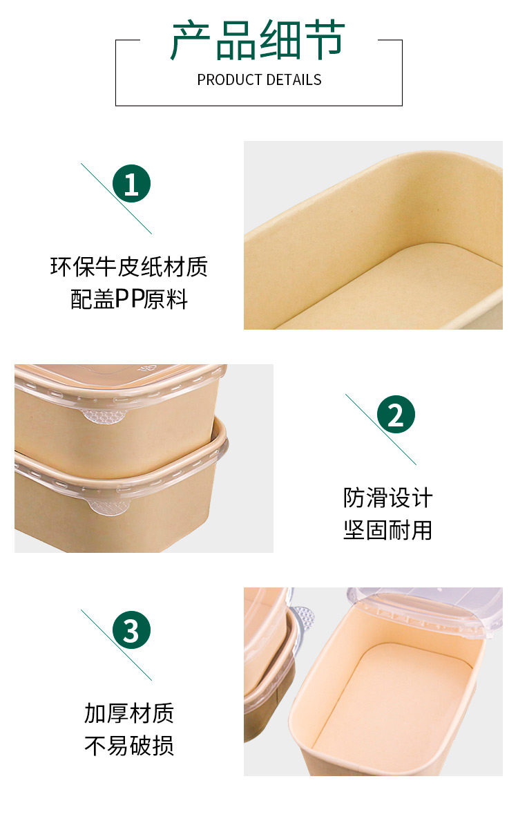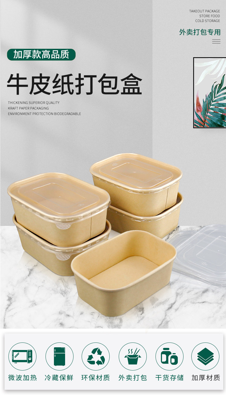Disposable Kraft Paper Rectangular Lunch Box Takeaway Bento Fast Food Salad Packing Box Fried Rice Lunch Box with Lid in Stock
