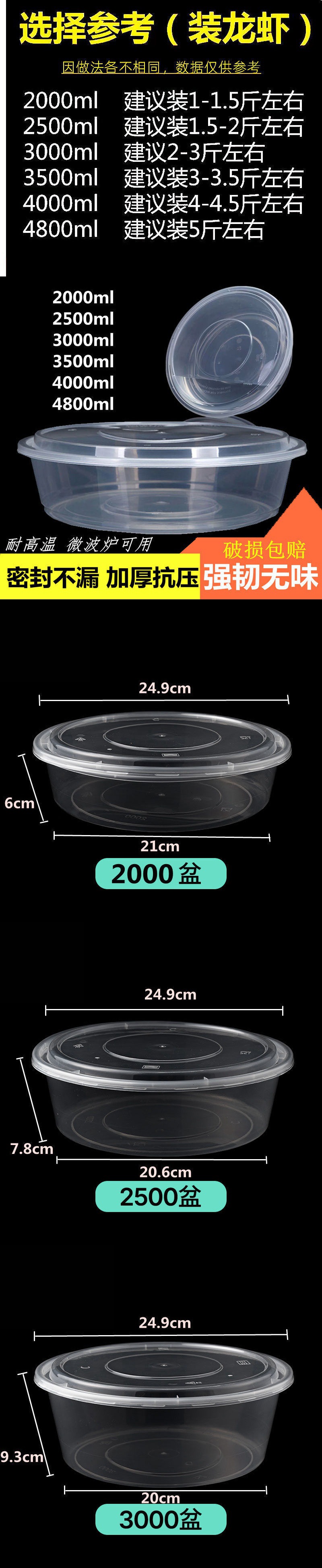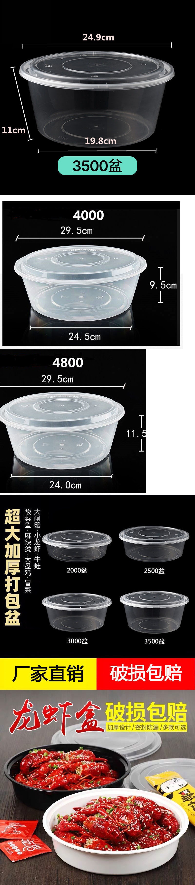 Disposable Lunch Box round Large Plastic Basin Crayfish Large Capacity to-Go Box Take out Bowl