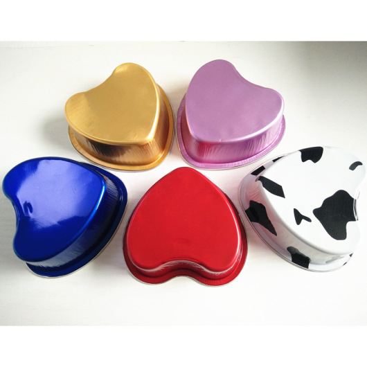 Aluminum Foil Box Disposable Lunch Box Packaging Tin Foil Cup Baking Heart-Shaped Cake Baking Cup Pudding Cup 100ml with Lid