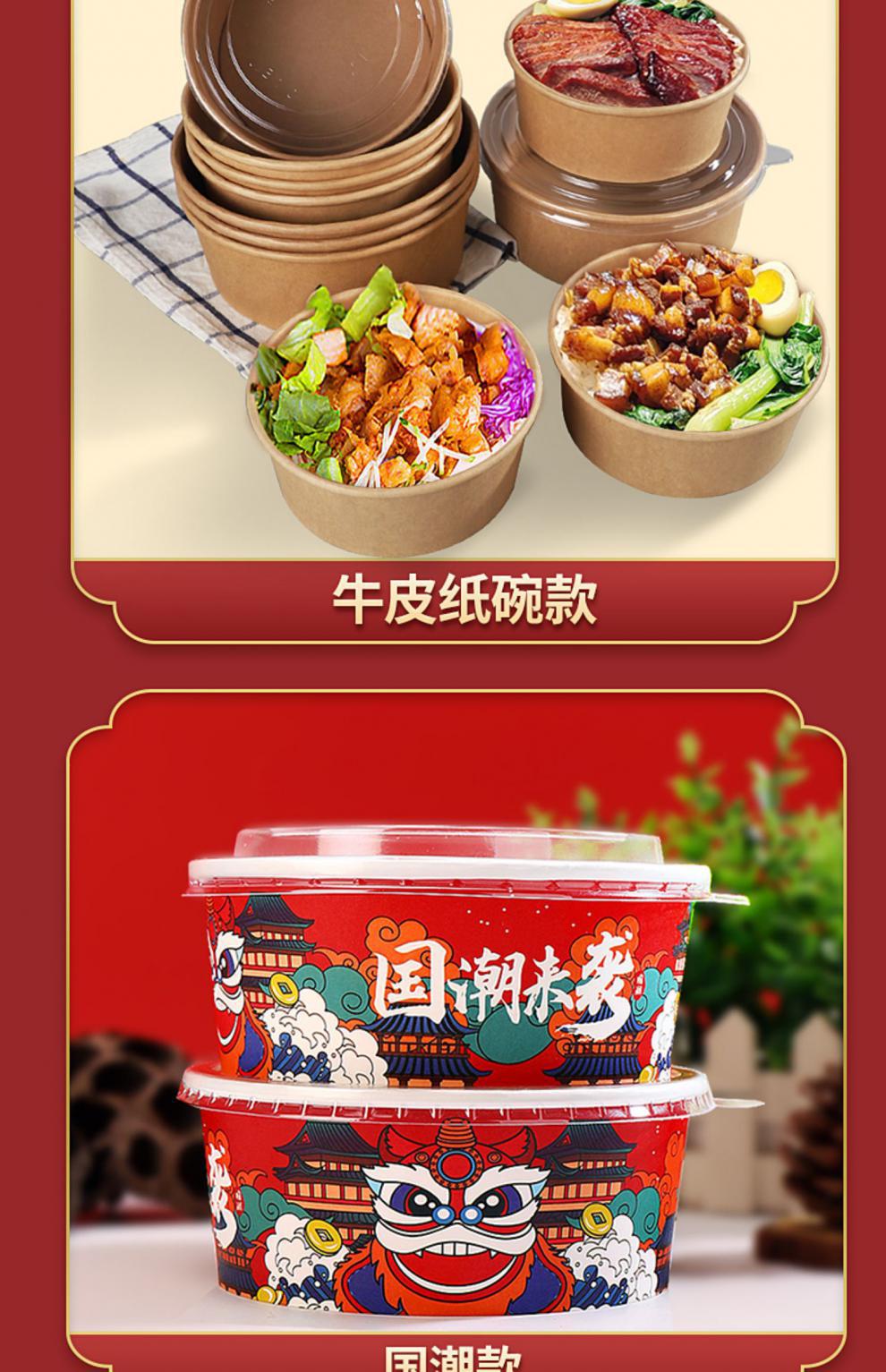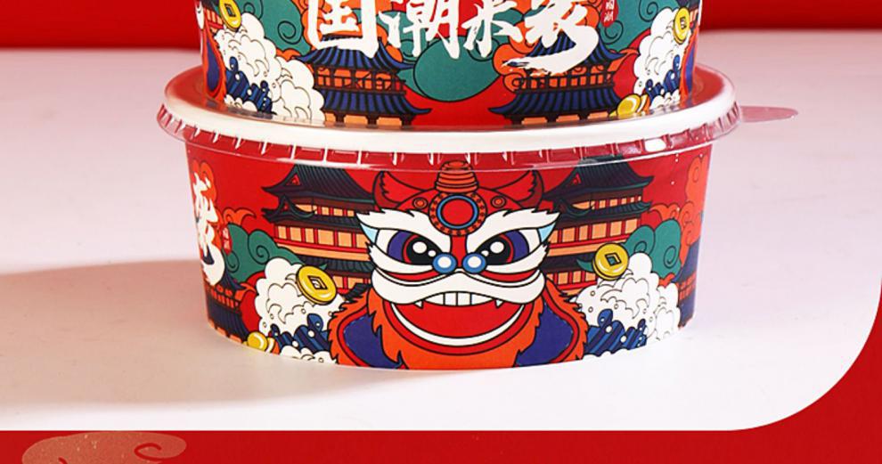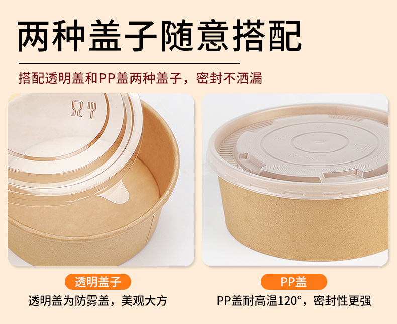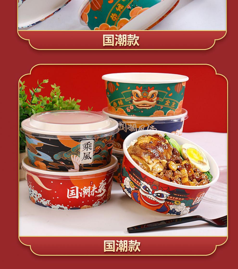 Paper Bowl to-Go Box Disposable round Thickened Salad with Lid National Fashion Paper Lunch Box Takeaway Commercial Paper Bowl