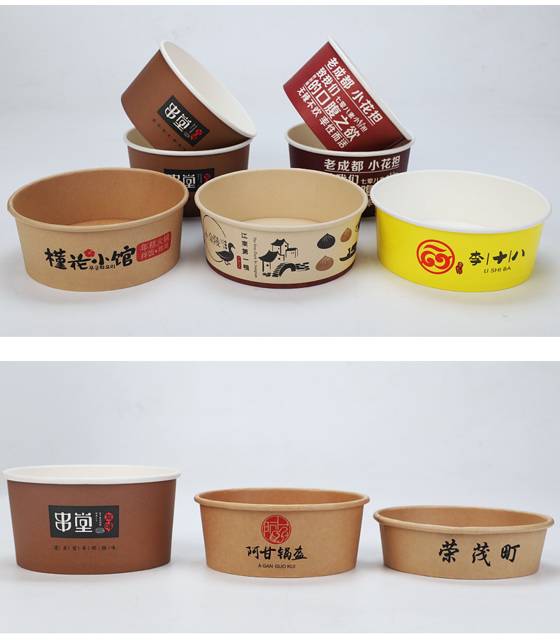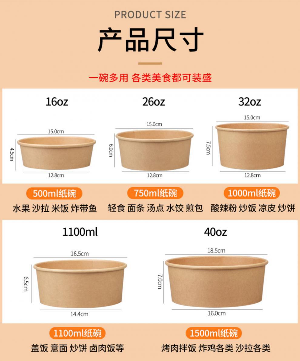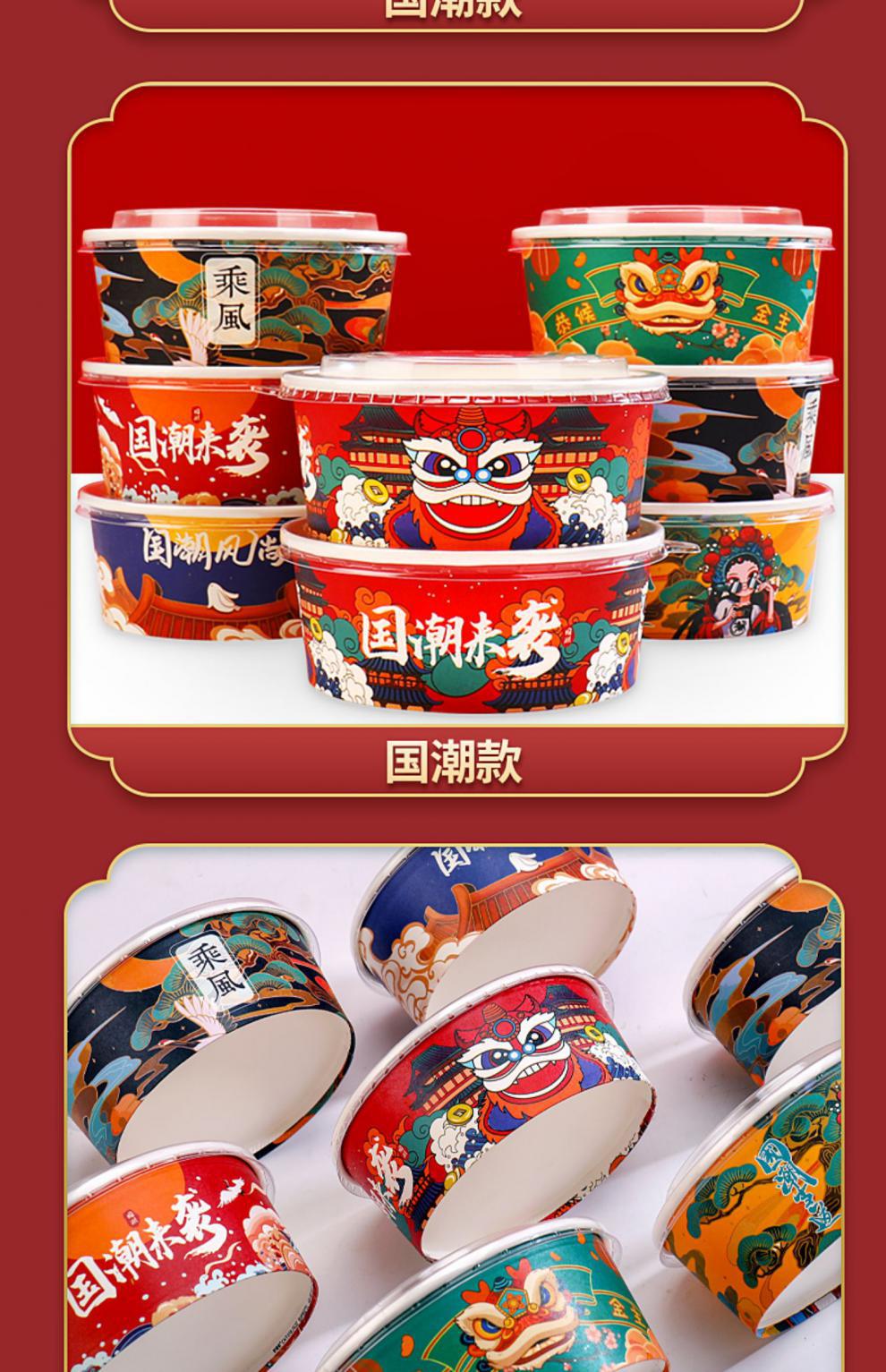 Paper Bowl to-Go Box Disposable round Thickened Salad with Lid National Fashion Paper Lunch Box Takeaway Commercial Paper Bowl