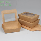 High-End Thickened Disposable Kraft Paper Packaging Paper Box Window Takeaway Lunch Box Paper Bowl with Lid Customizable 1