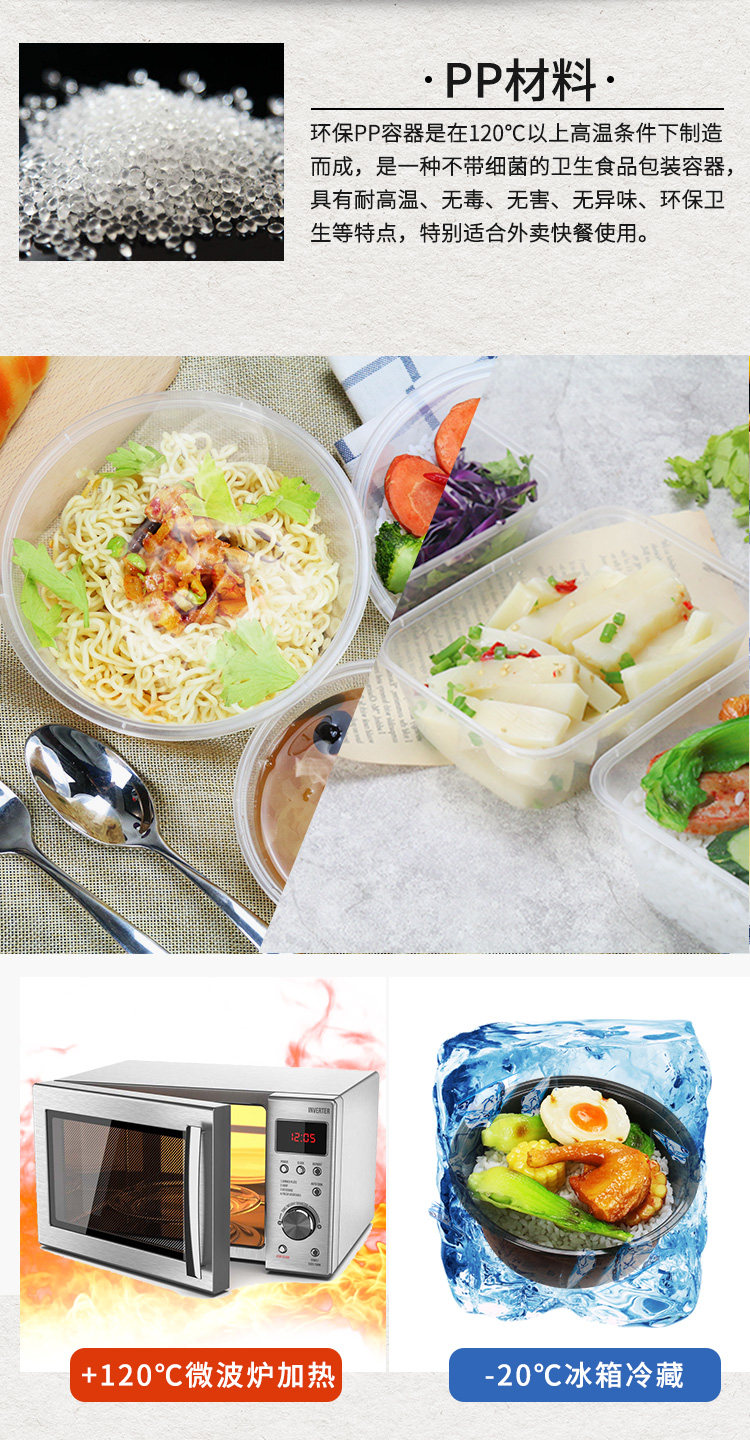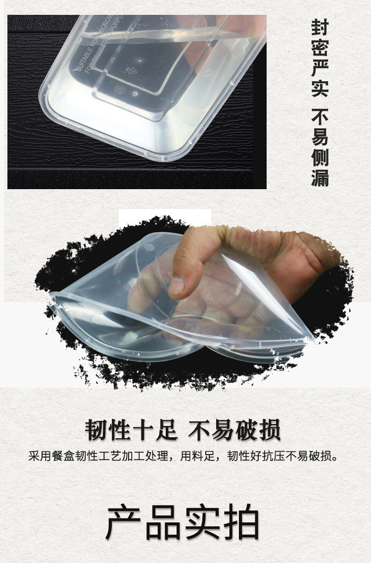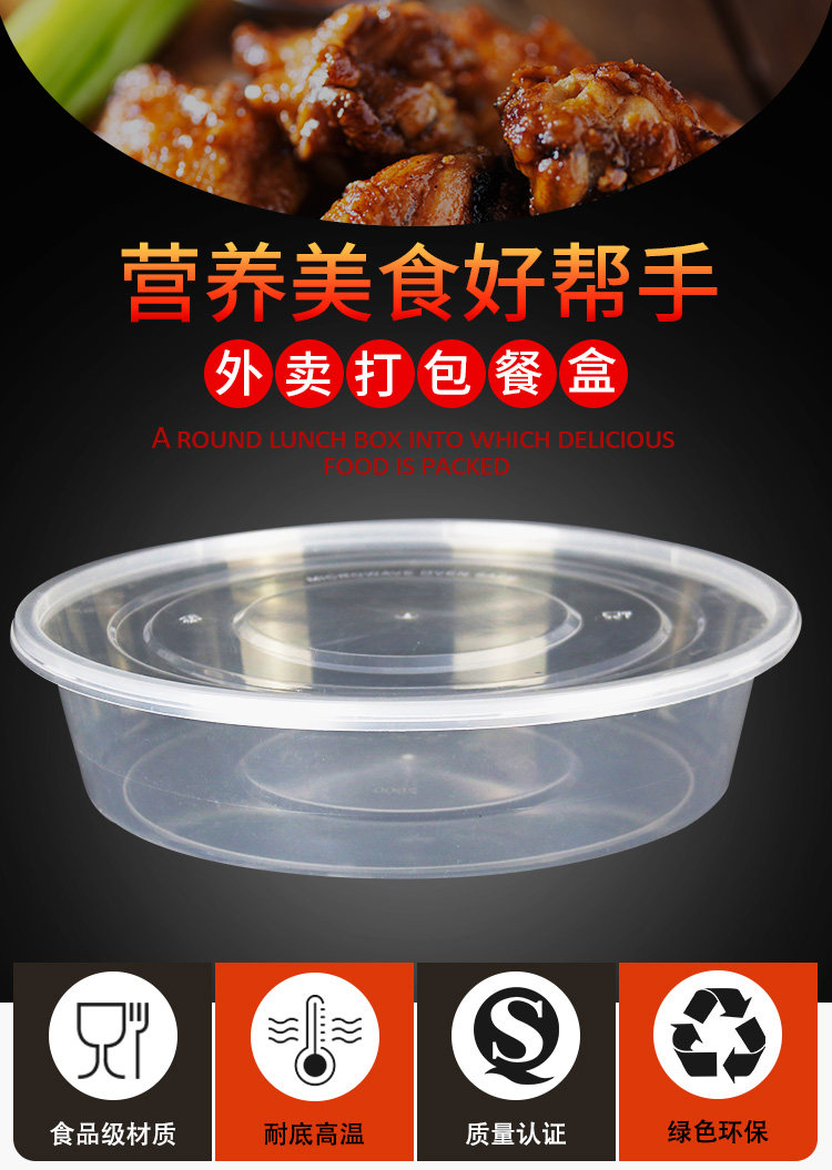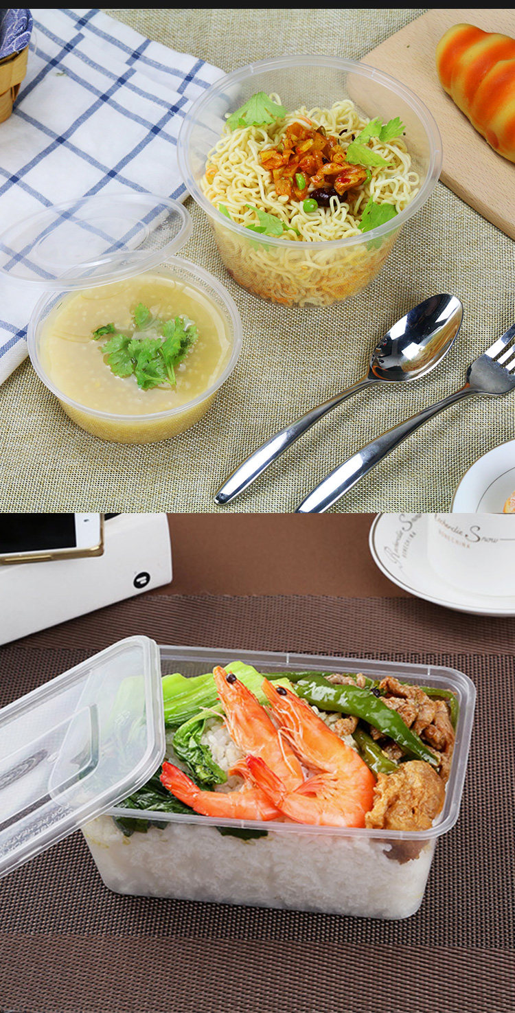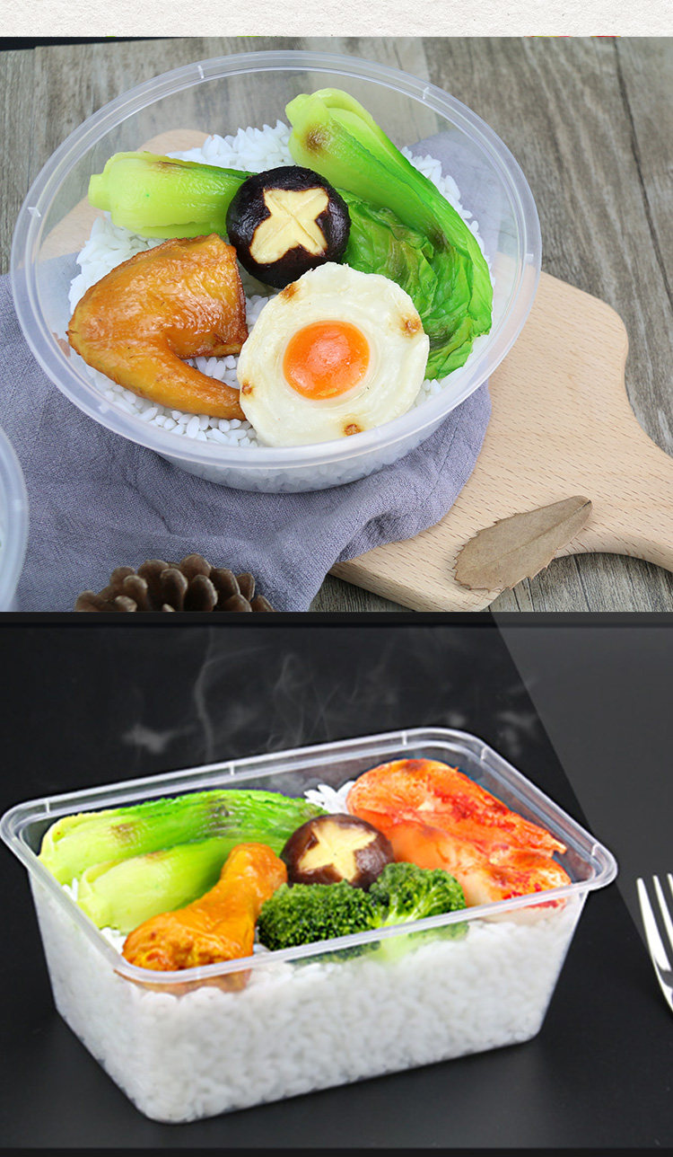 Thickened Disposable Lunch Box Rectangular round Plastic to-Go Box Transparent Takeaway Fast Food Tableware Commercial Lunch Box