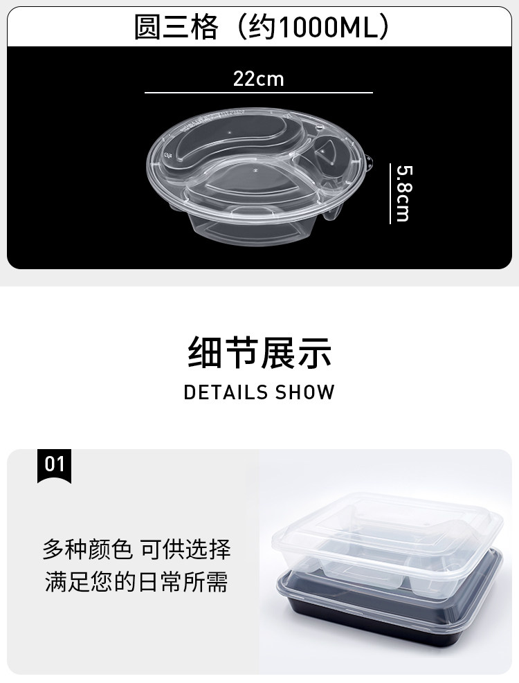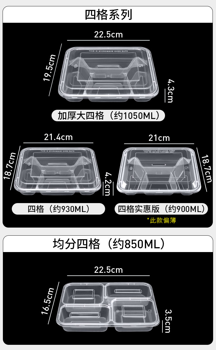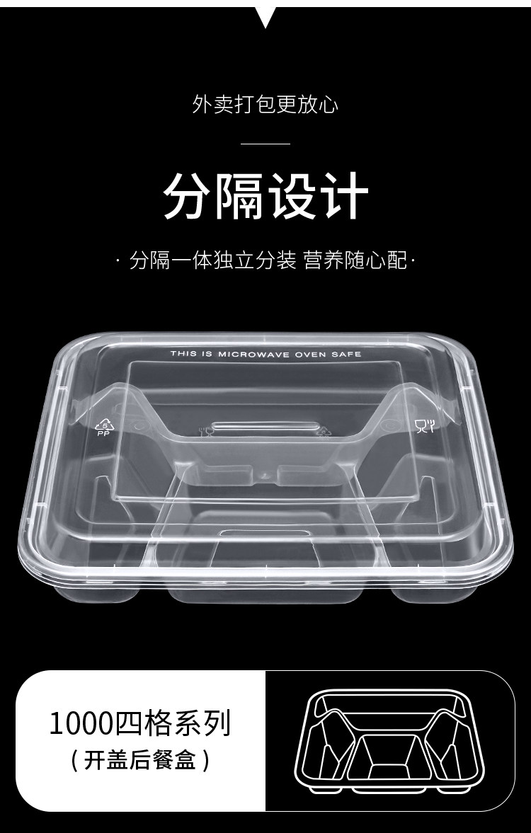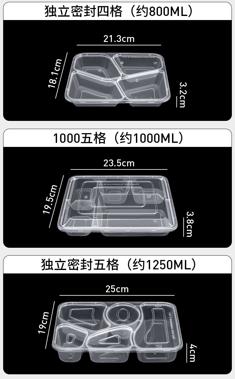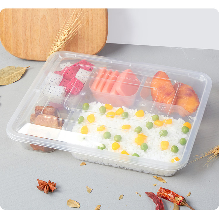 Disposable Four-Grid Five-Grid Lunch Box Three-Grid Takeaway Packing Box-Grid Fast Food Box Transparent Bento Lunch Box Plate
