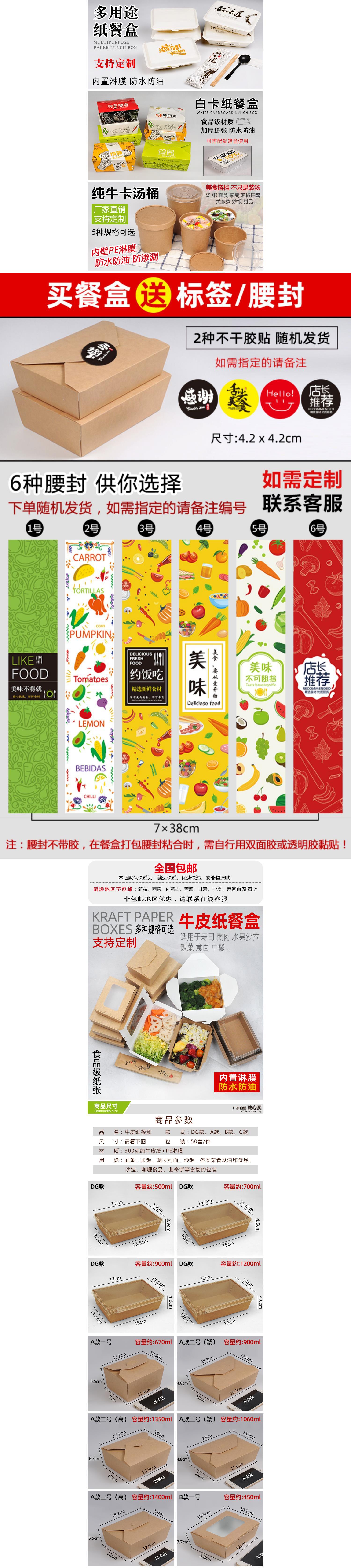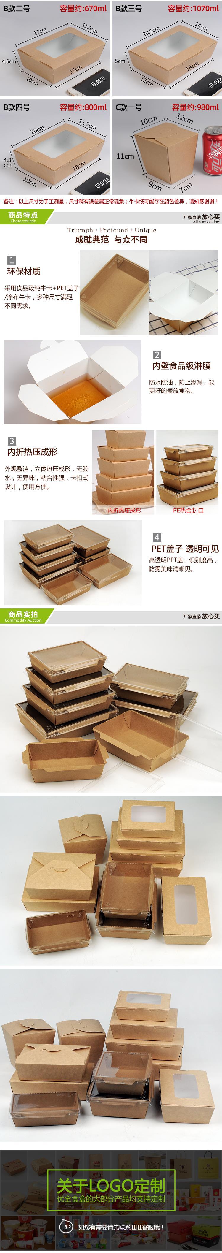 Kraft Paper Fast Food Disposable Environmental Protection Takeaway Packing Box Fruit Salad Box Pasta Packing Box Logo