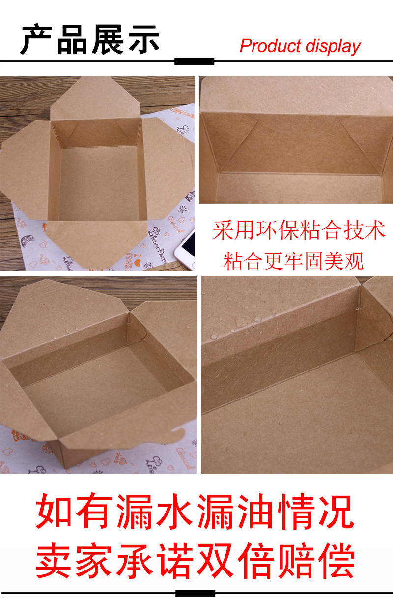 Kraft Paper Lunch Box Disposable Takeaway Packing Box Oil-Proof Waterproof Thickened Lunch Box Fast Food Salad Paper Box