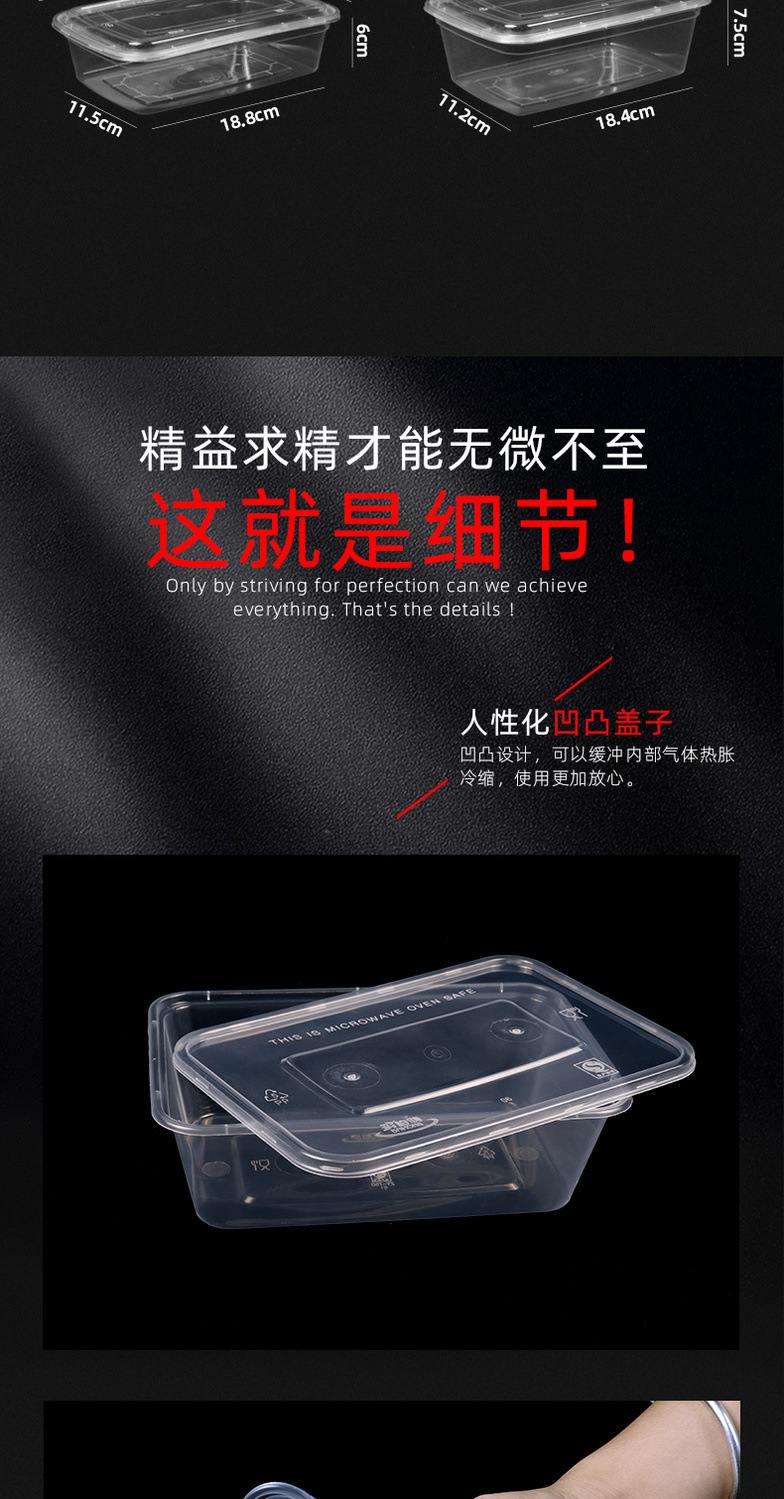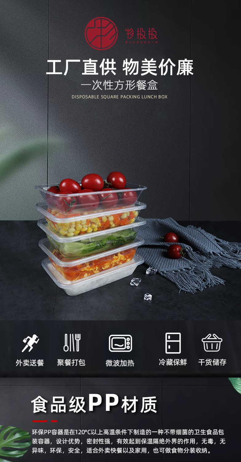Disposable Lunch Box Rectangular Plastic Take out Take Away Box Transparent Thick Cutlery Fast Food Lunch Box with Lid