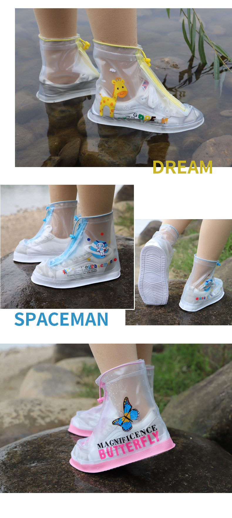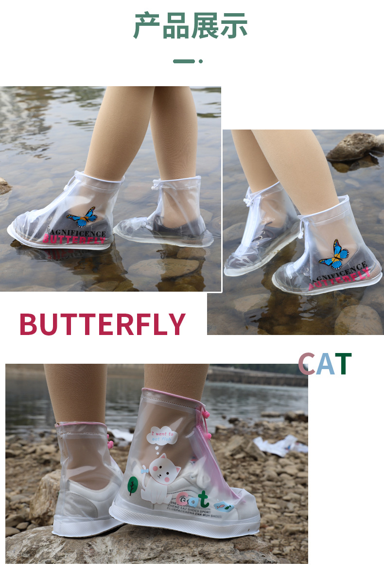 Children Rain Boots Cover Rainy Day Kid Cartoon Primary School Student Silicone Rain Boots Cover Boys and Girls Middle Tube Booties