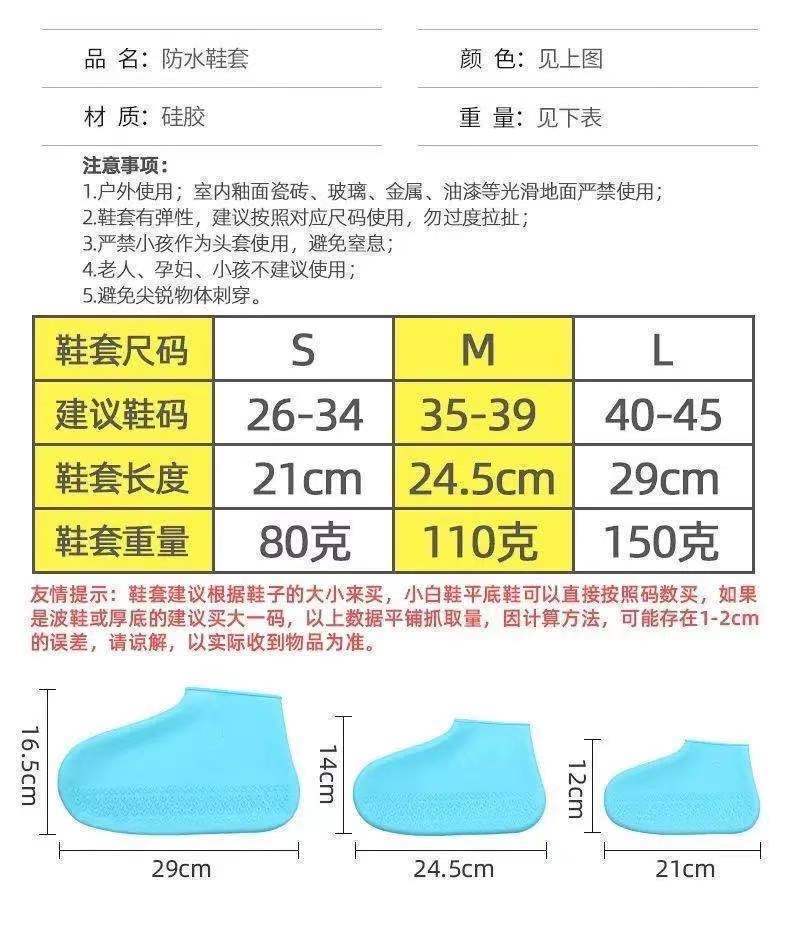 Thickened Silicone Waterproof Rain Rain Shoe Cover Non-Slip Wear-Resistant Adult Men and Women Rain Portable Rainwater Proof Shoe Cover Children