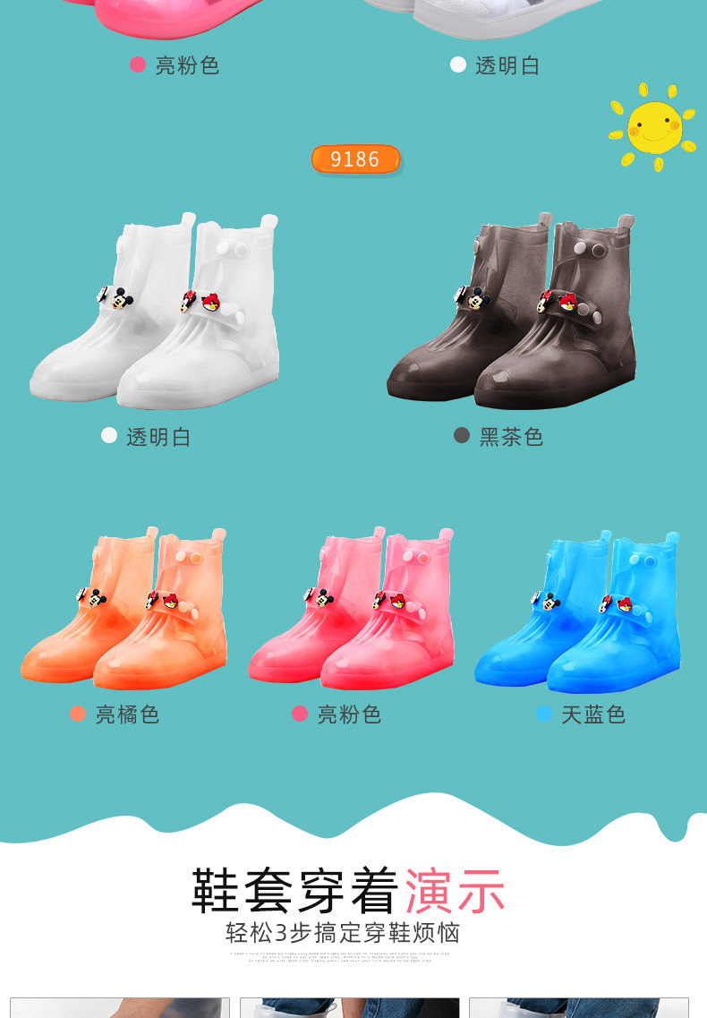 Children's Waterproof Shoe Cover Waterproof Rain-Proof Men's and Women's Non-Slip Shoe Cover for Students and Children Thickening Wear-Resistant Sole Rainy Days